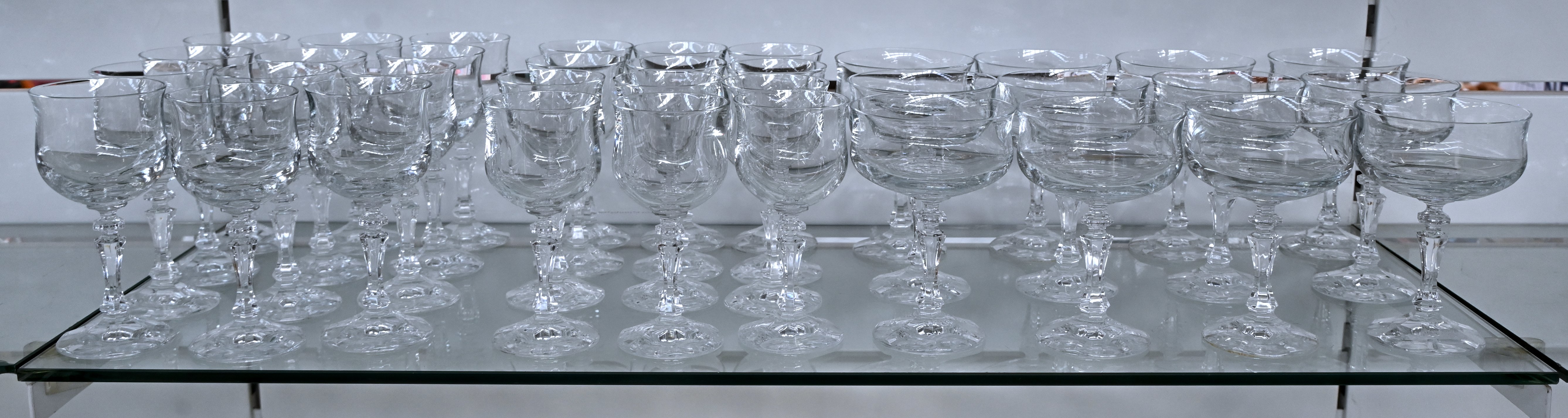 A lot of 39 vintage crystal glasses, sizes ranging from 6 x 19 cm to 12 x 12 cm high. -