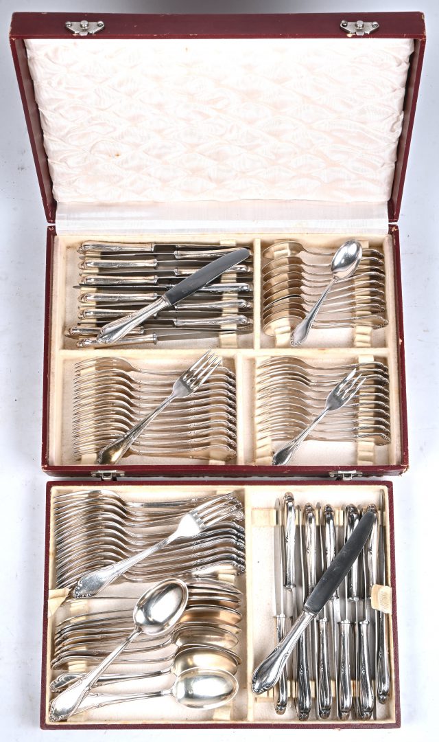 #193Een vintage inox bestek voor 12 personen in cassette met 3 laden, Prinz Neosil.