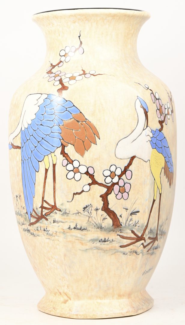 #293Een aardewerken vaas met een drinkende eend in het decor, gemerkt Amphora, Austria.