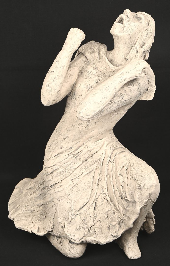 "Pair", a gray glazed earthenware sculpture, attributed to Elie Van Damme. Head glued. -