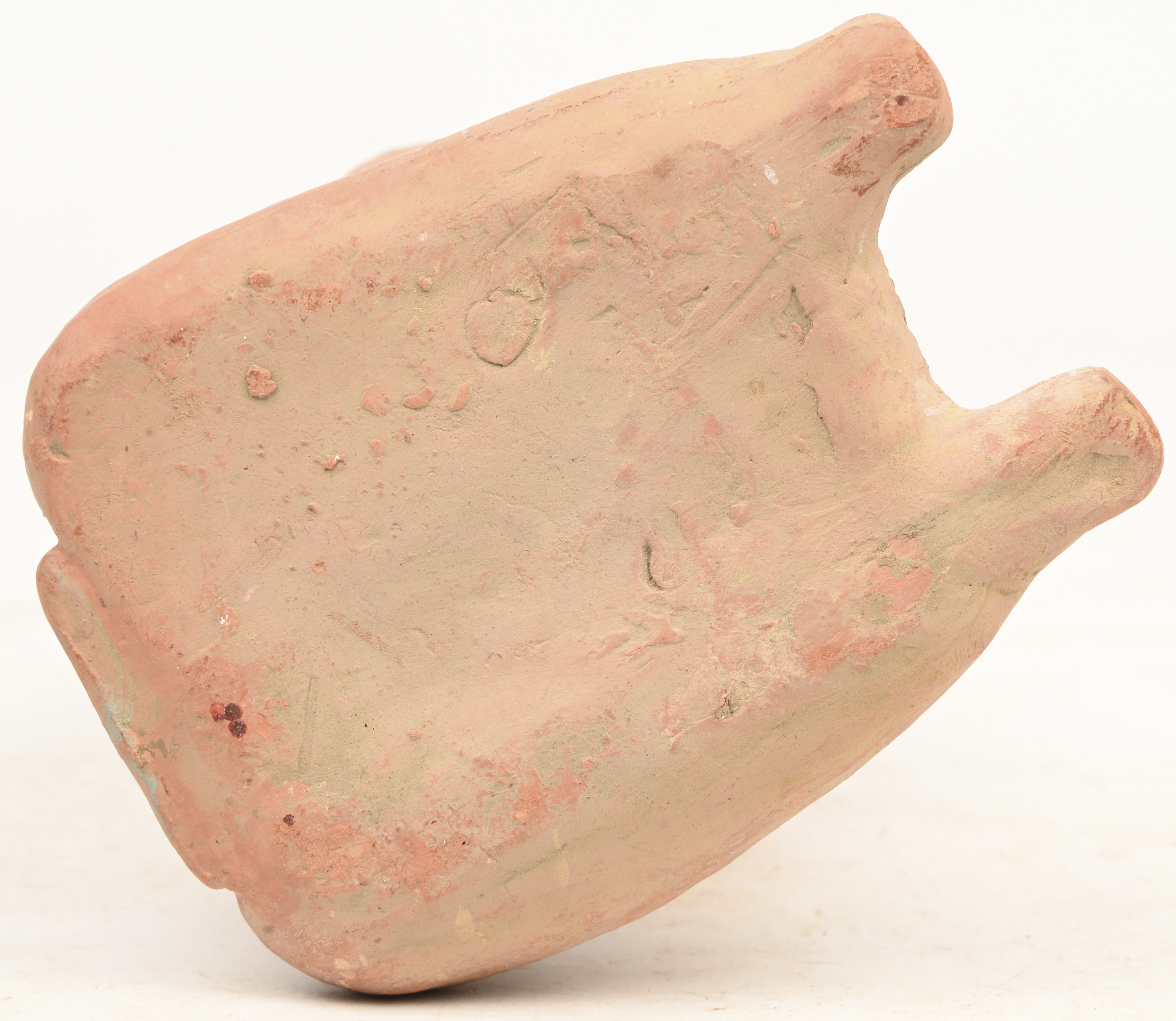 Een aardewerken beeldje van een geknielde vrouw in Jaina Mayaanse stijl.
