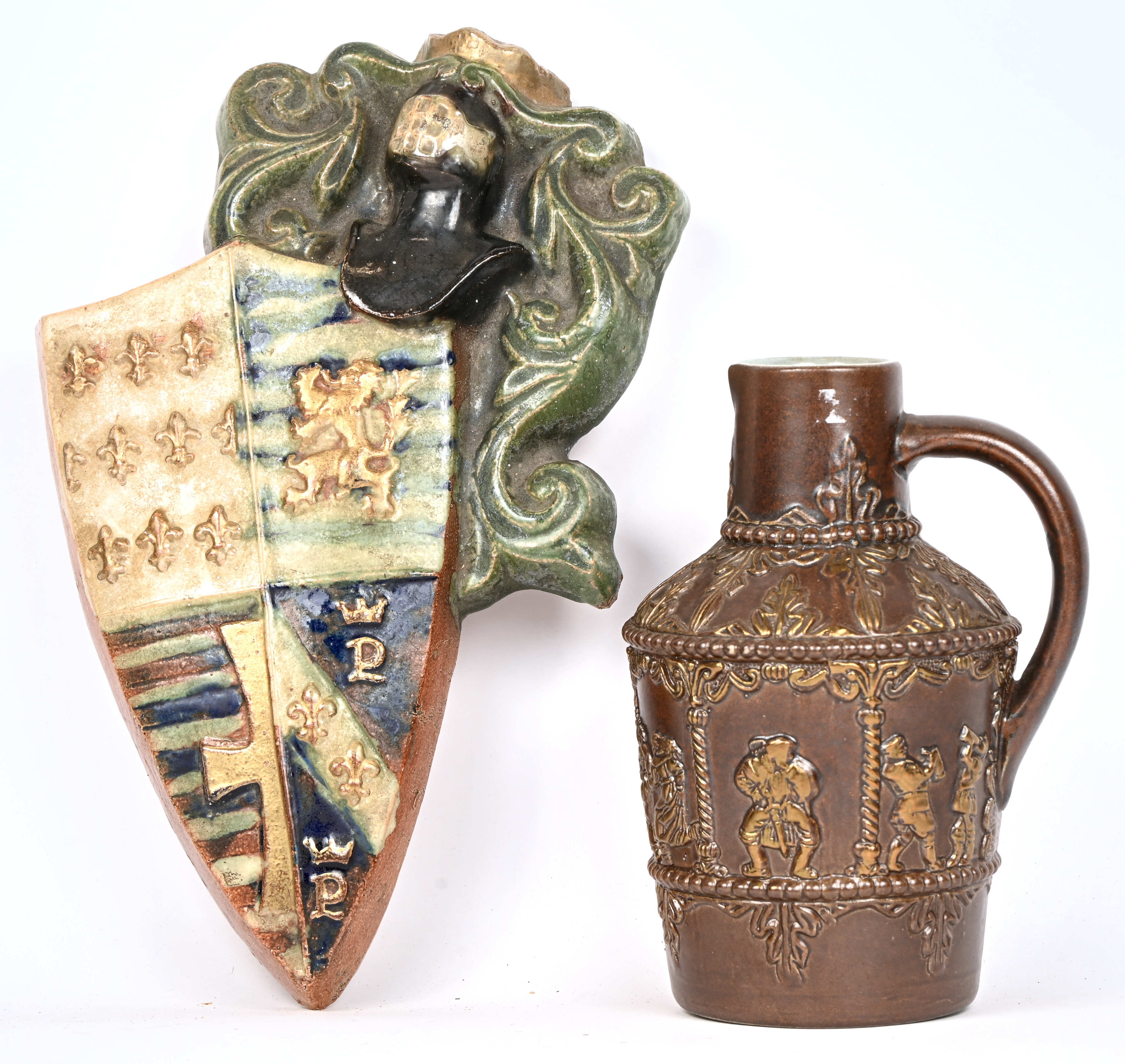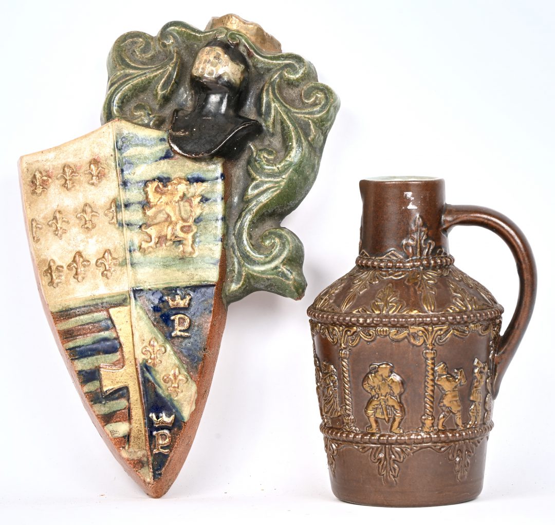 A ceramic coat of arms with crown, marked Armogrès Belgium. -