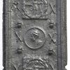 #145SekuritEen zware rechthoekige patrijspoort in massief messing met hierin een foto van een driemaster. Met Sekurit glas.