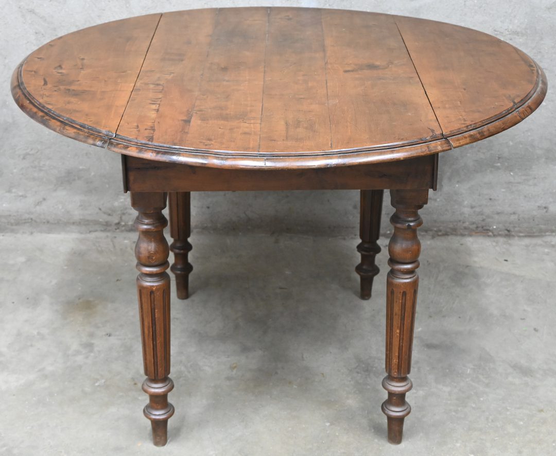 #239Een massief eikenhouten ronde tafel in Louis XV stijl, verlengbaar maar zonder verlengstuk.