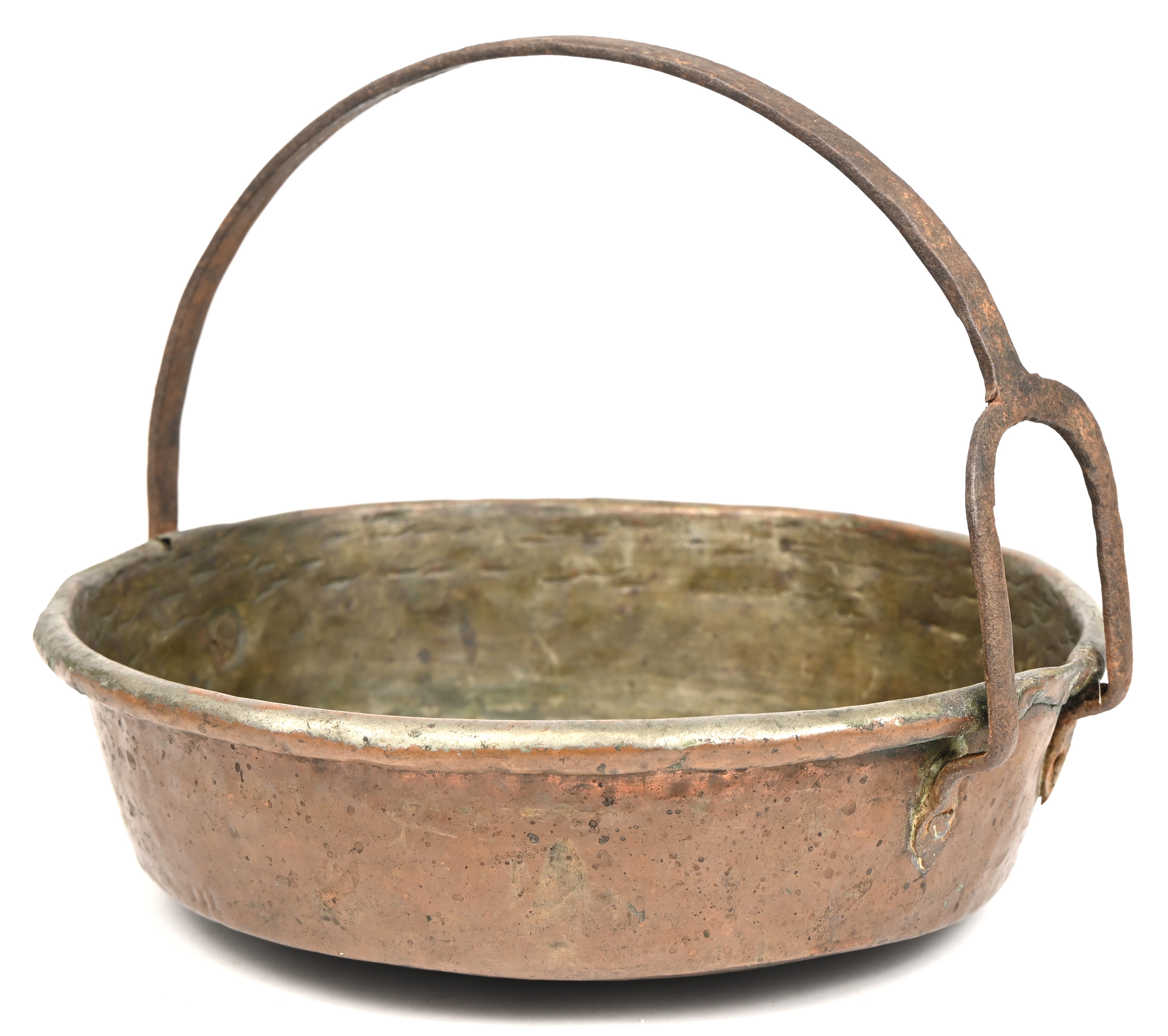 Een antieke koperen ketel.
