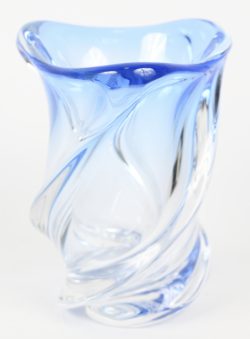A small vase of VSL crystal. Colored blue in the mass. Not marked. -