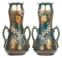 #82Boch FrèresEen paar keramische vazen, art-nouveau, gemerkt BFK 207 met floraal motief.