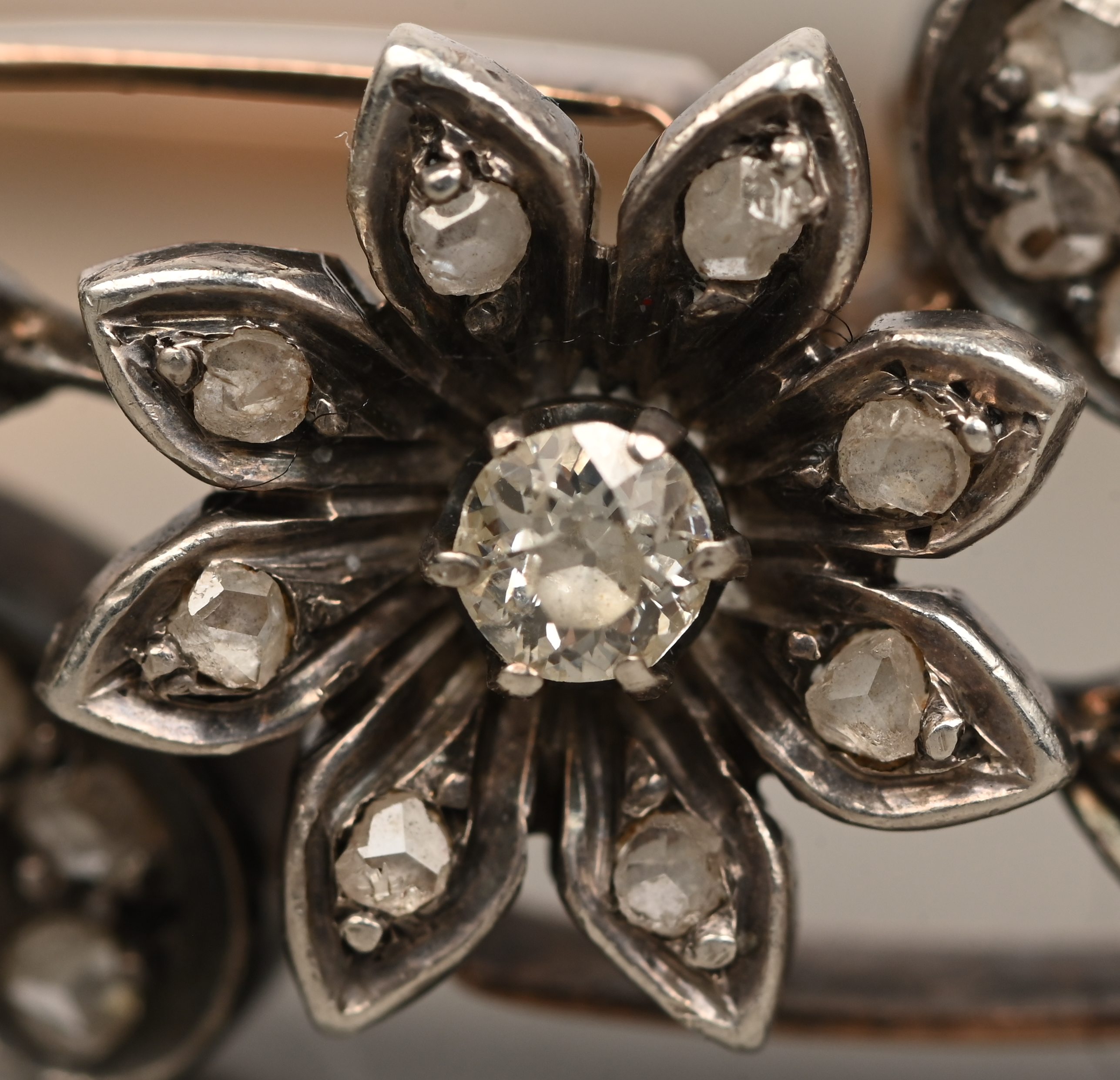 A bracelet of 18 kt yellow gold and silver set with old cut diamonds with a total weight of approximately 0.70 ct.