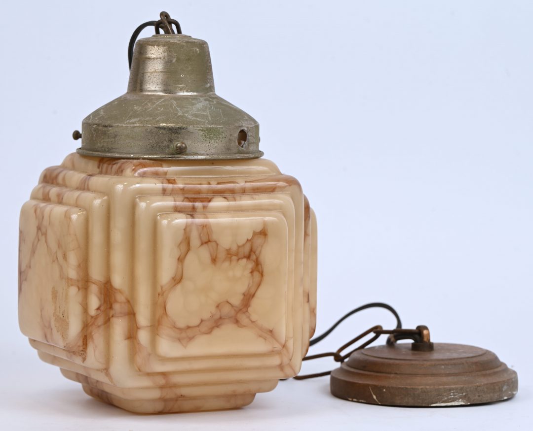 An Art Deco hall lamp in beige glass.