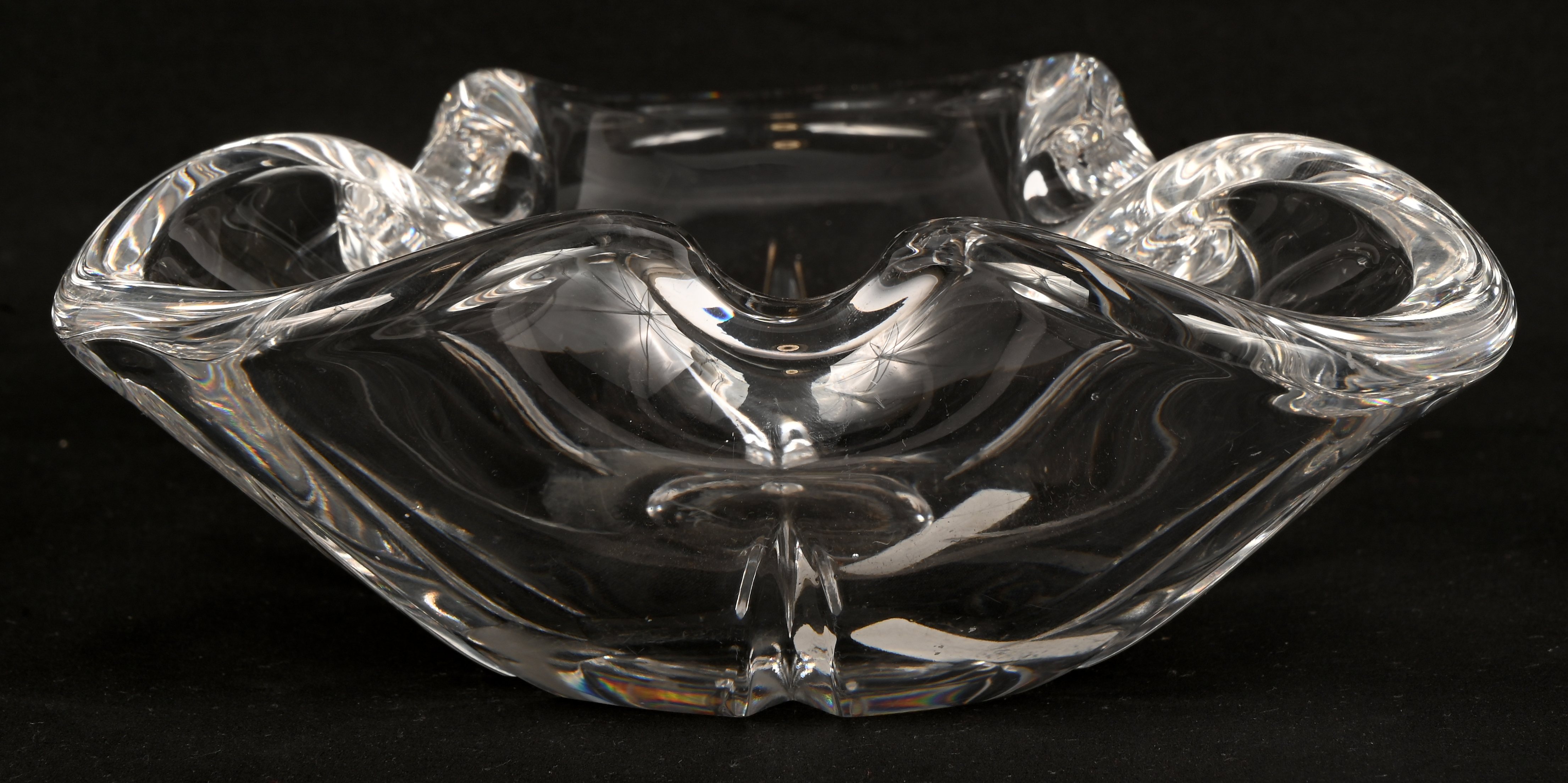 Three bowls and a vase made of pressed crystal, colored yellow in the mass. Also included is a small bonbonniere of Bohemian cut crystal, colored red in the mass.No longer availableOnline onlyActive bid: 10.00 €Dim. Hoogte 5-19 cmEstimate: € 40 / 60 -