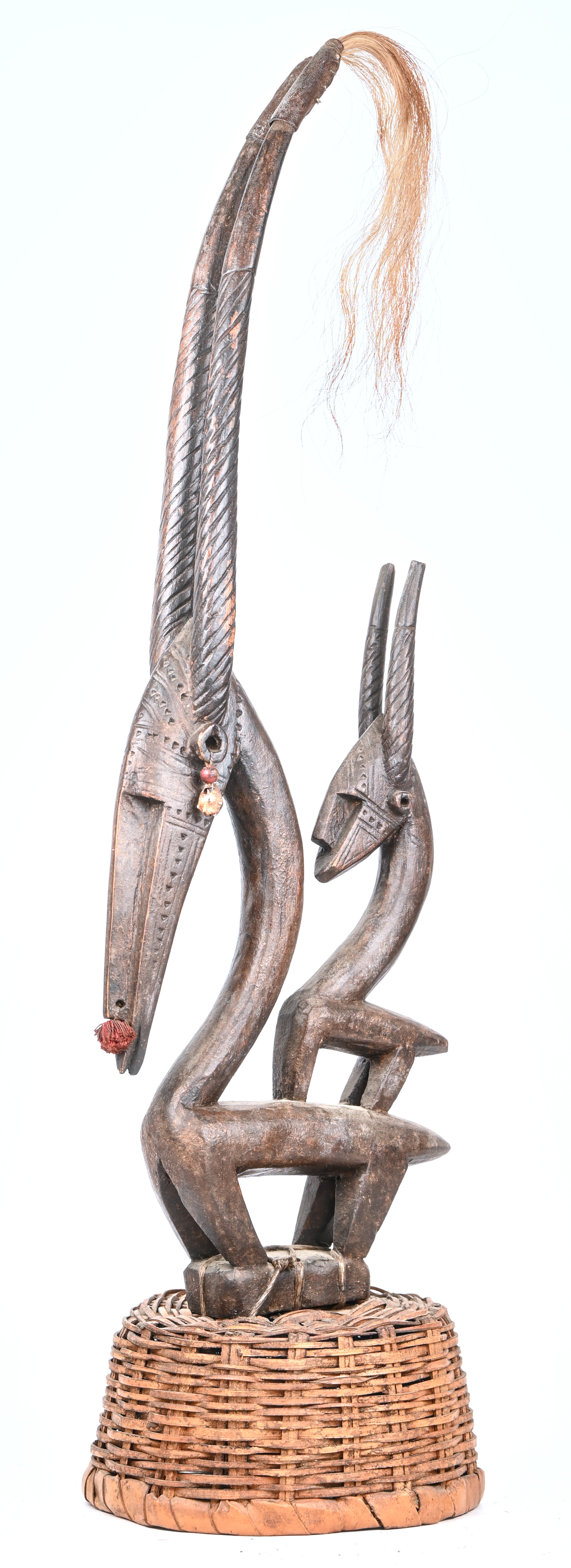 #5‘Het ganzenhoedstertje’, een gepatinneerd bronzen beeldje op een zwartmarmeren voet. Getekend H. Plé.