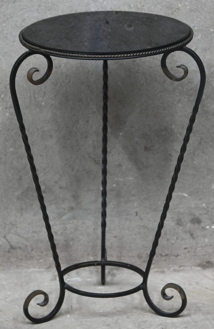 #315Een halfhoog bijzettafeltje met parelmoer inlegwerk. Enkele stukjes manco.