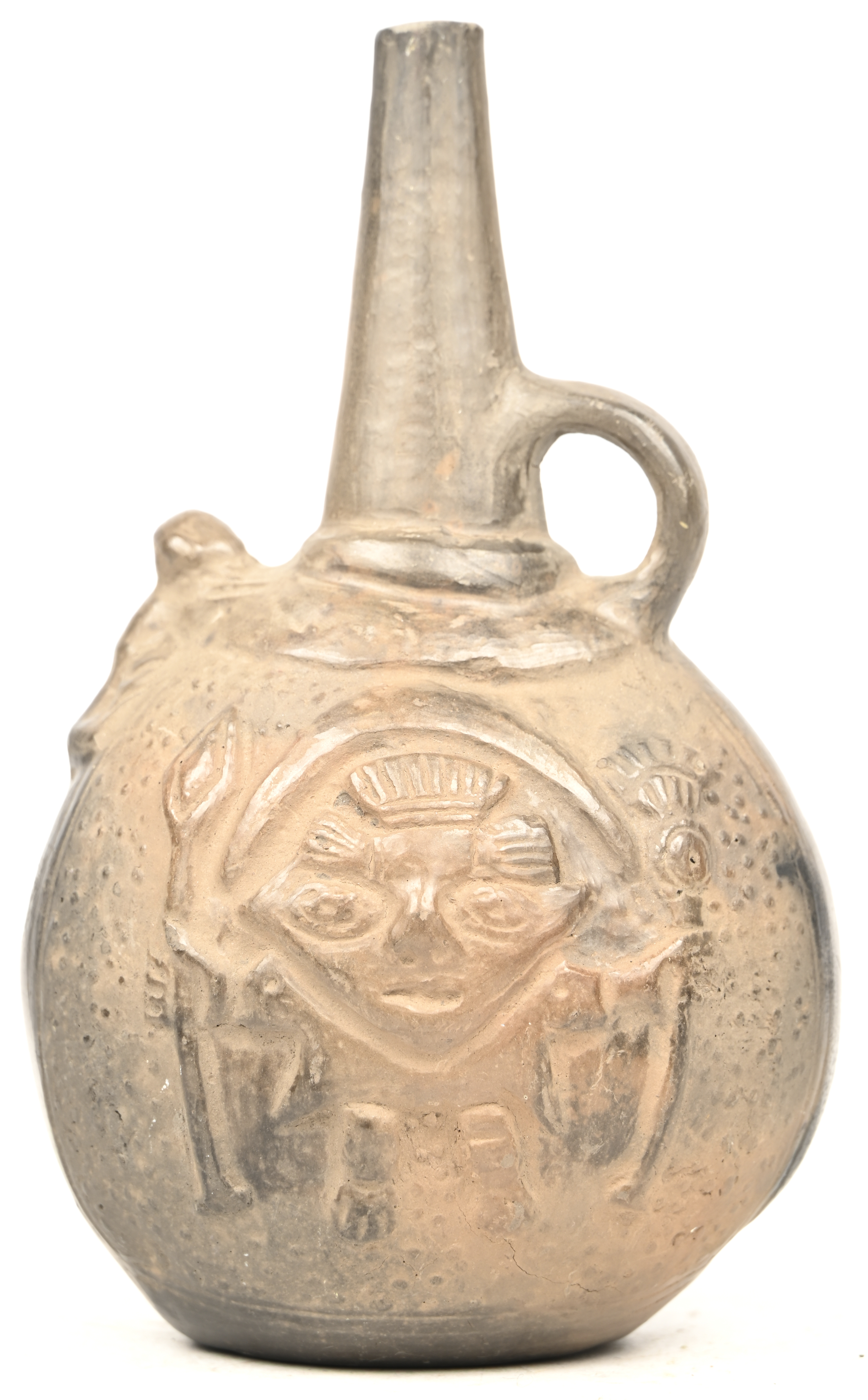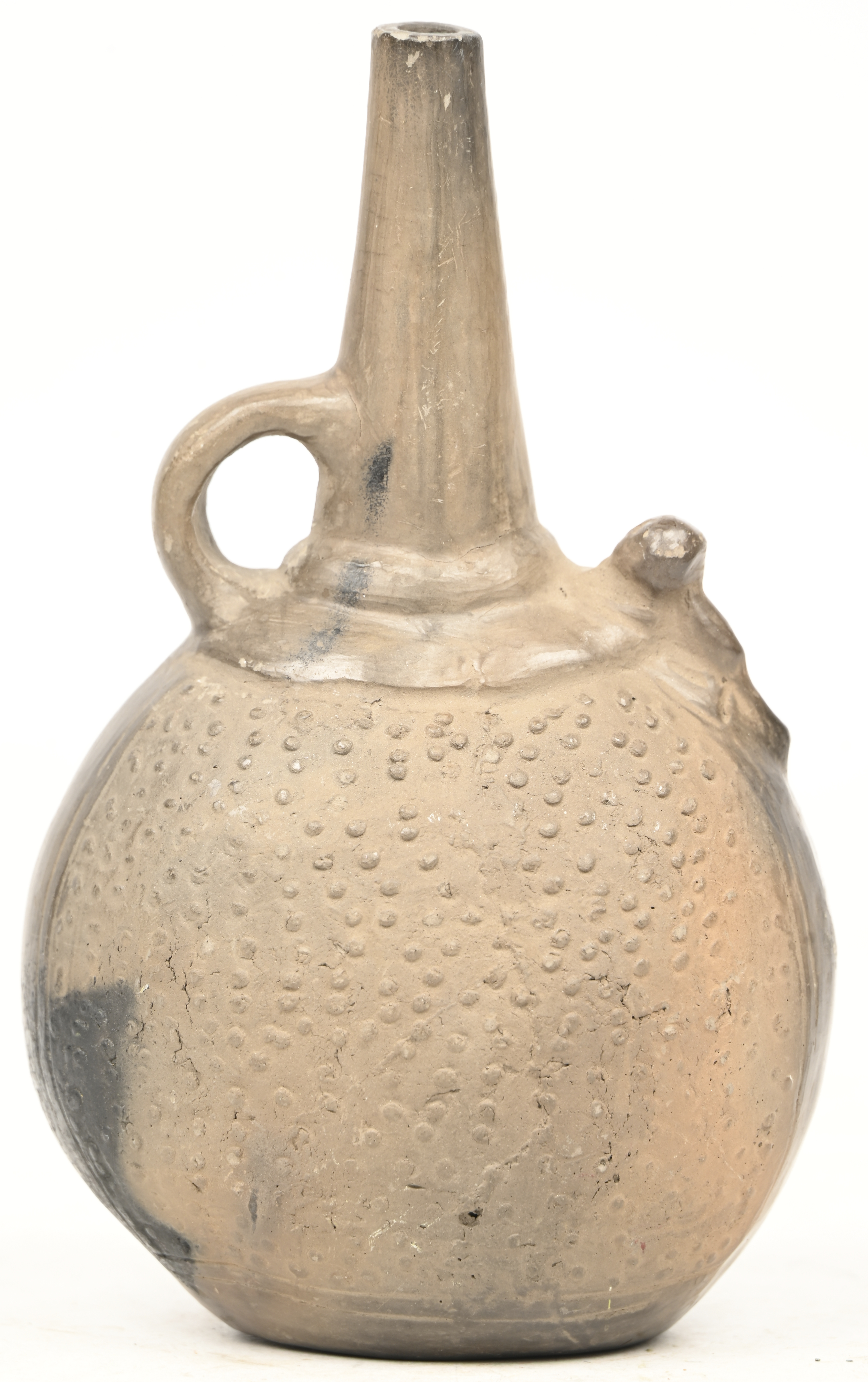 A blackware ceramic carafe with a spout, Peru. Presumably a pre-Columbian replica, 20th century.
