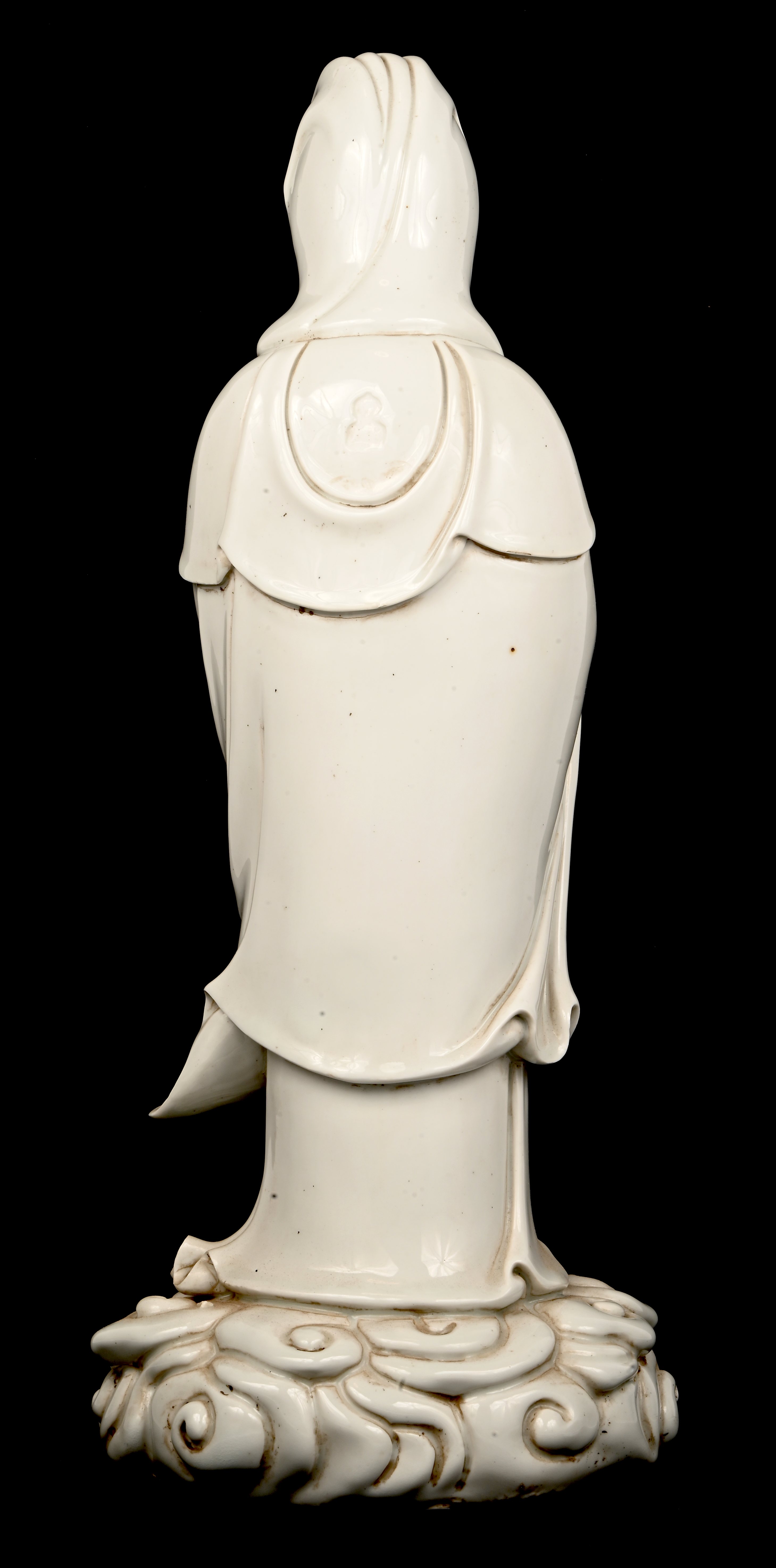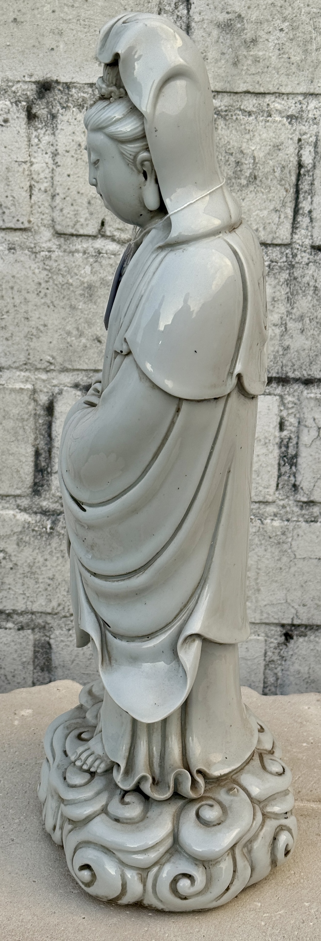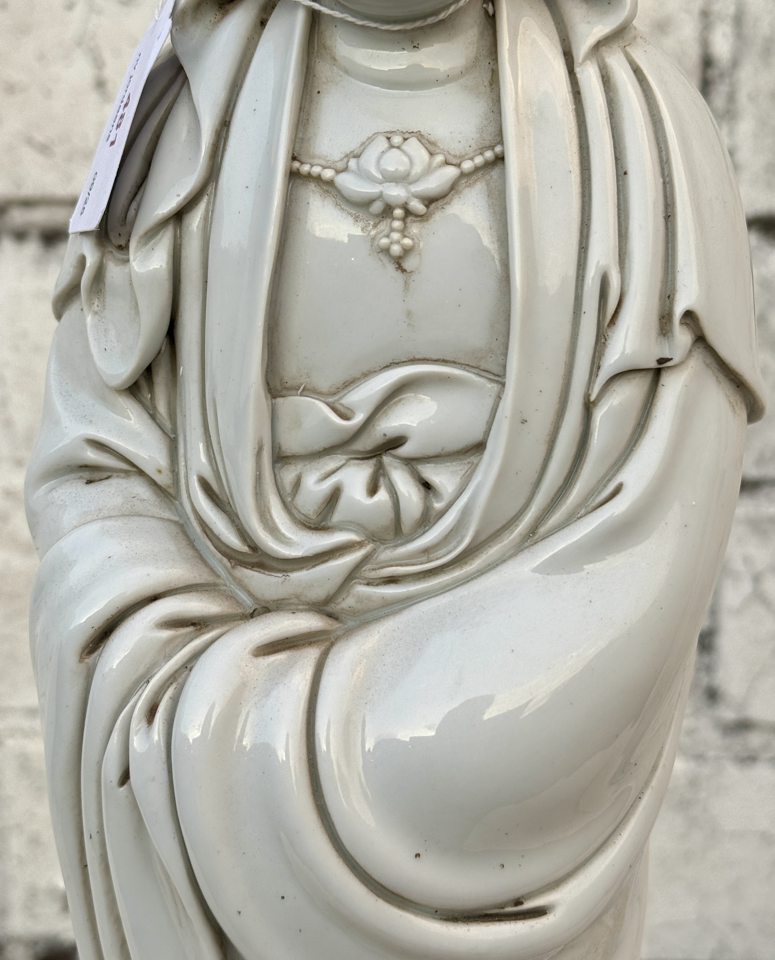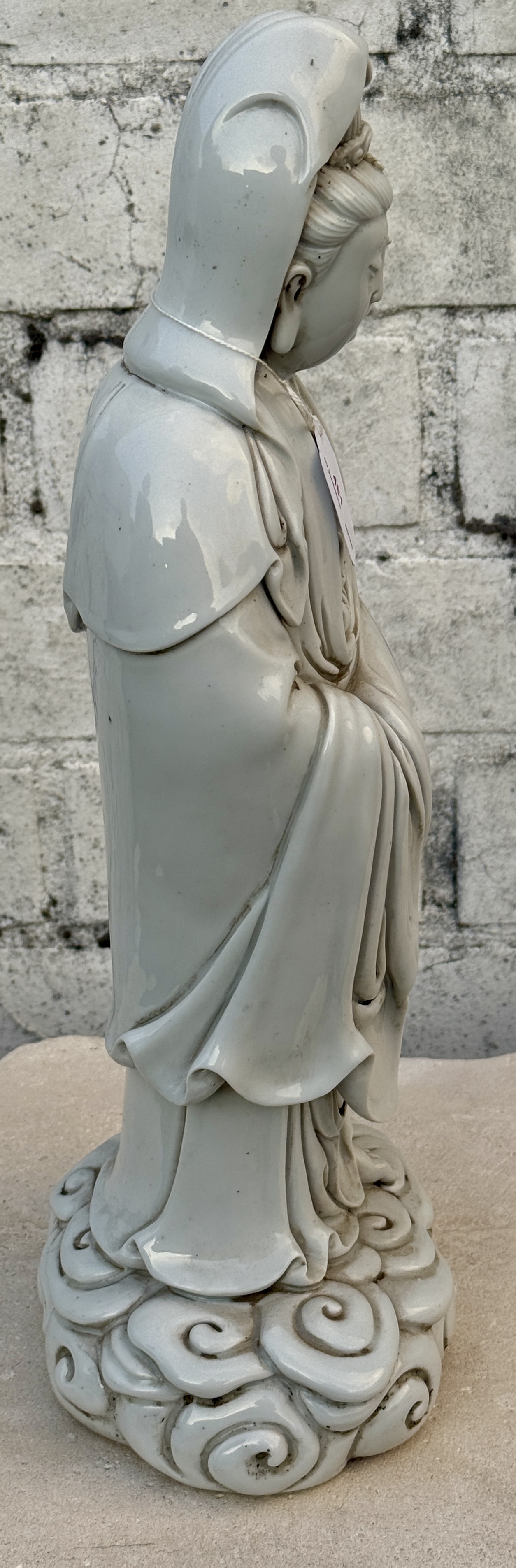 A large Chinese cylindrical vase with blue on white decoration of a palace by the water.No longer availableDim. h: 44 cmEstimate: € 80 / 100 -