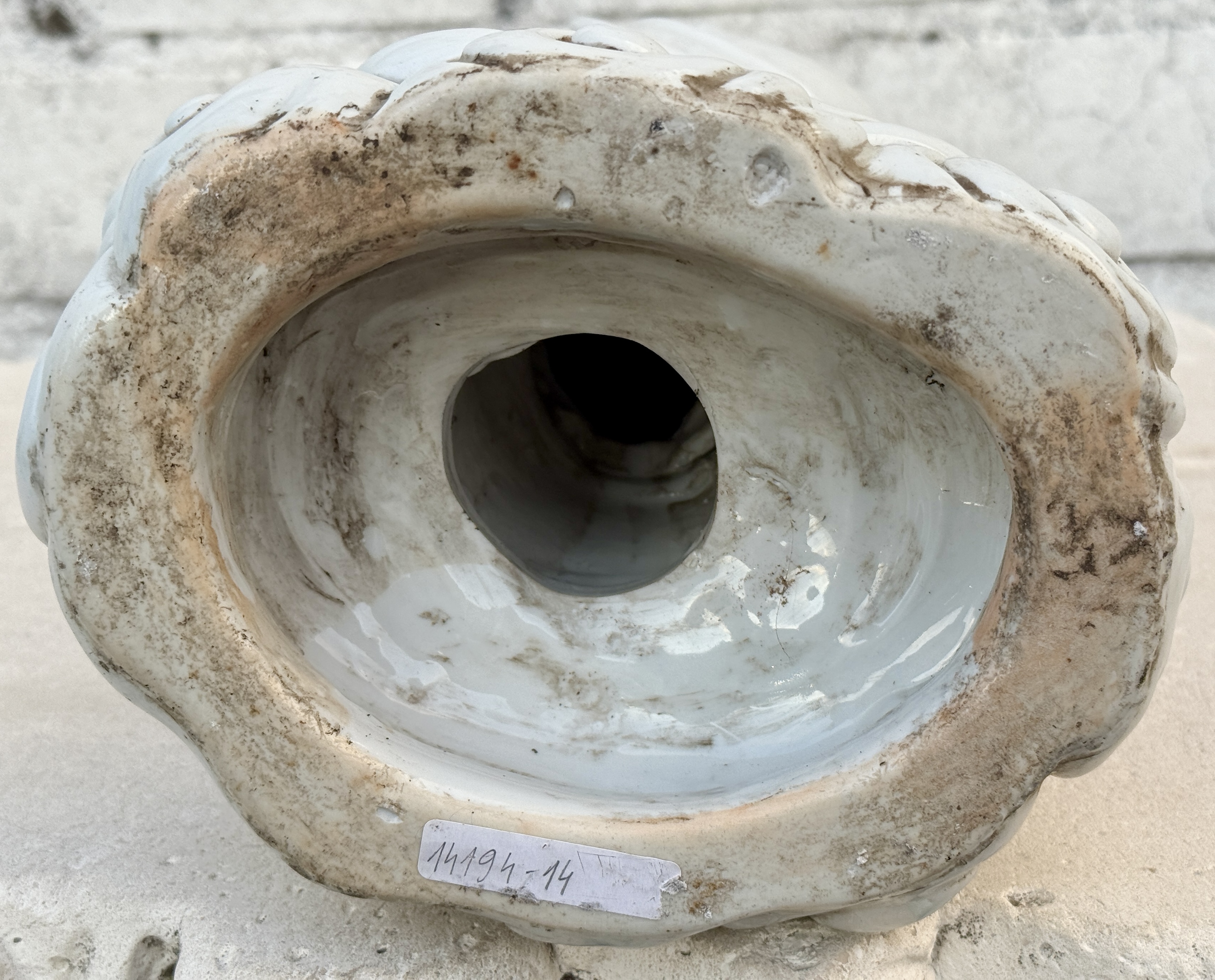 A lidded pot made of glazed Chinese earthenware. Featuring a palace by the waterfront in the decor.No longer availableDim. Hoogte 25, Ø 23 cmEstimate: € 75 / 100 -