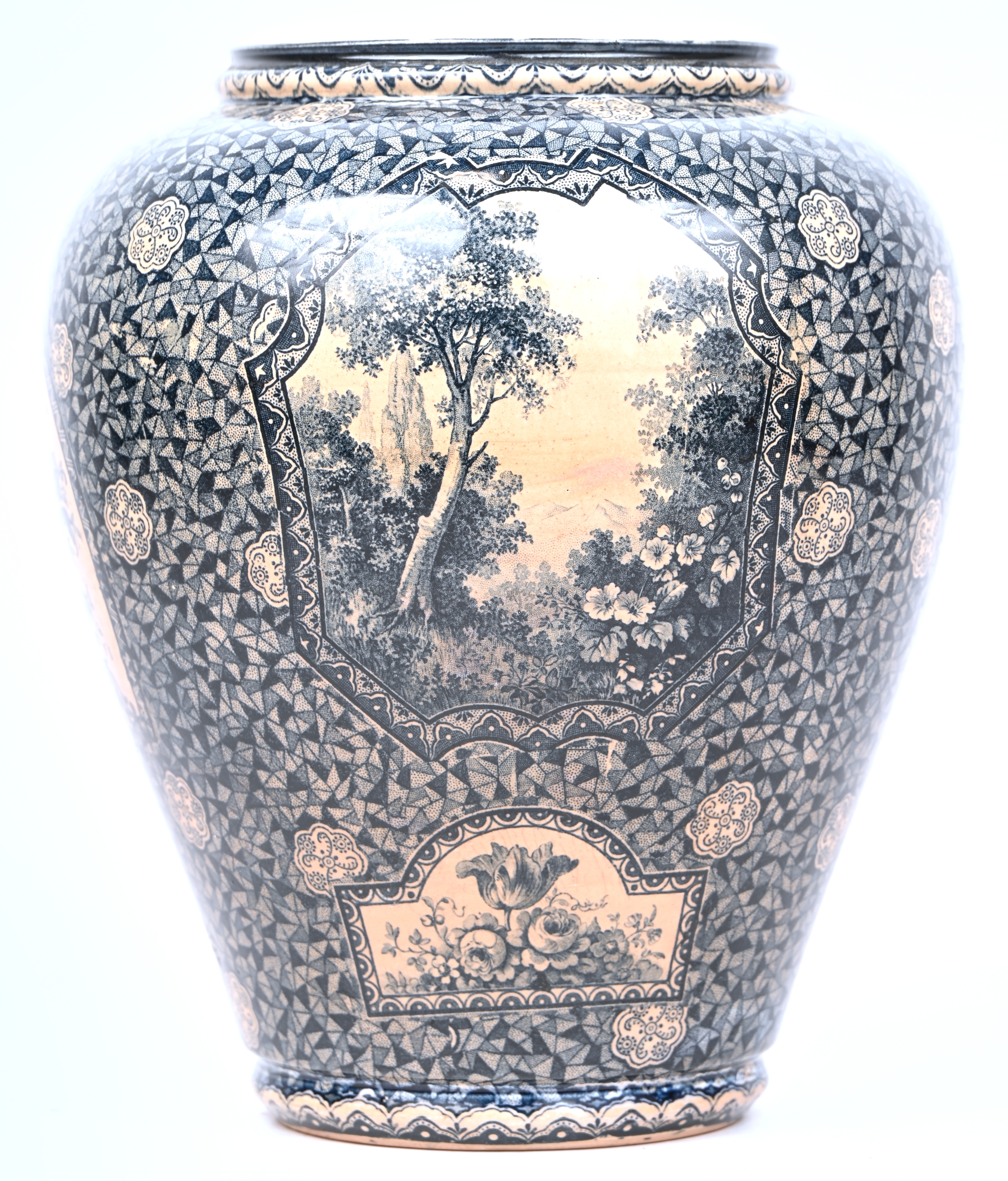 #22Rupel - BoomEen art-deco vaas, groen glas met een decor in goudverf, Rupel-Boom.