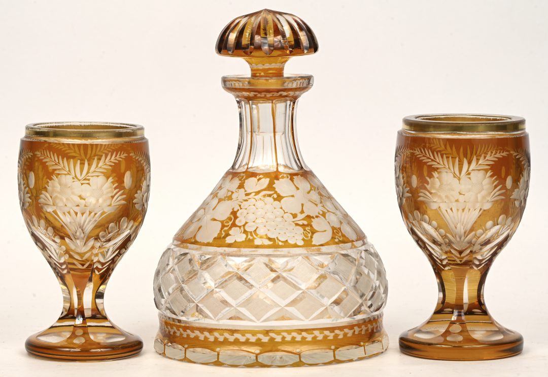 #138Christian DiorEen vintage glazen decanteerkaraf met verzilverde ring bovenaan. Gemerkt “Christian Dior”. Medio 1980.