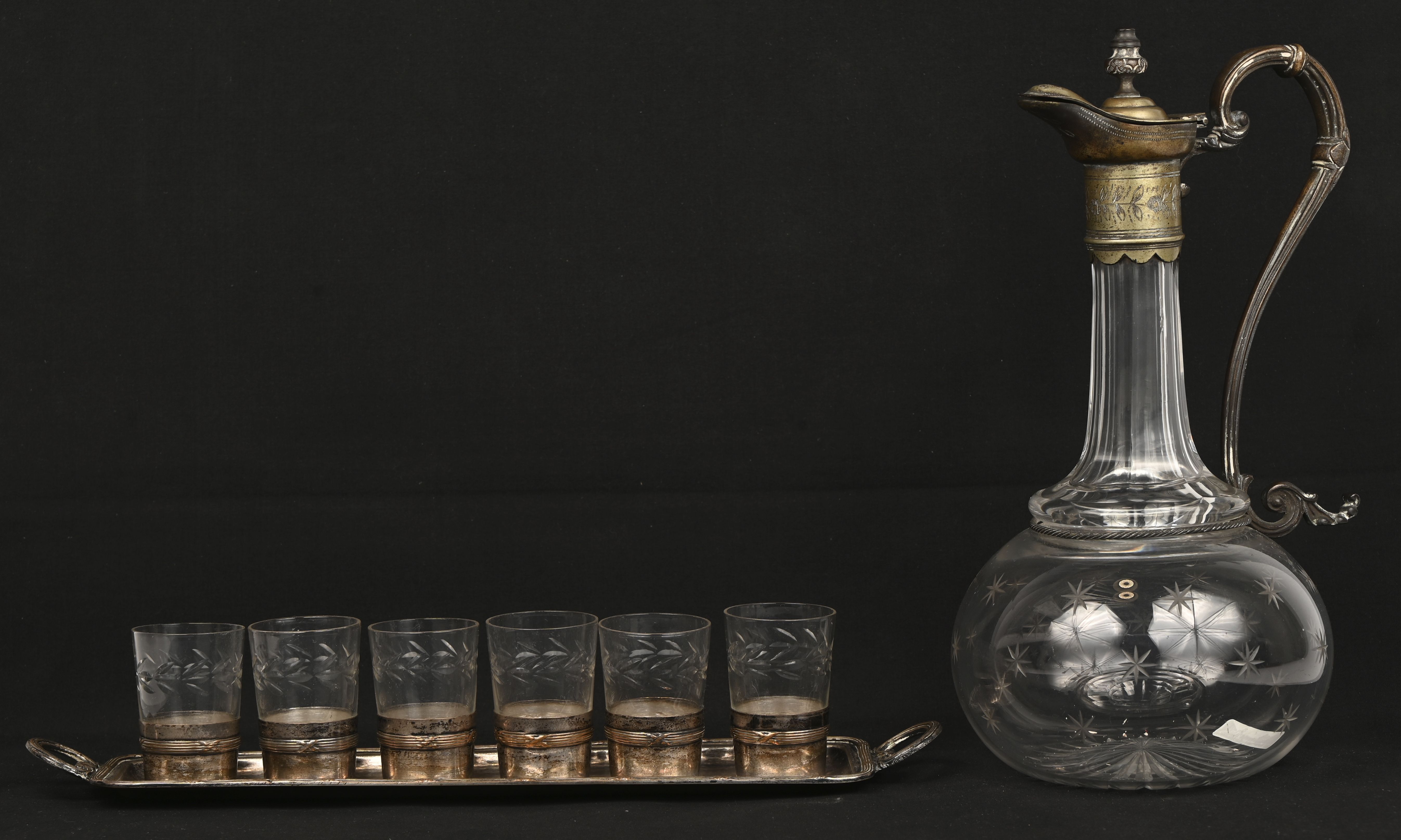 #289Een lot van 4 oude olielampjes, toegevoegd een verzilverd metalen kandelaar met glazen windlicht, een dekselpotje en een verchroomd metalen pomp.