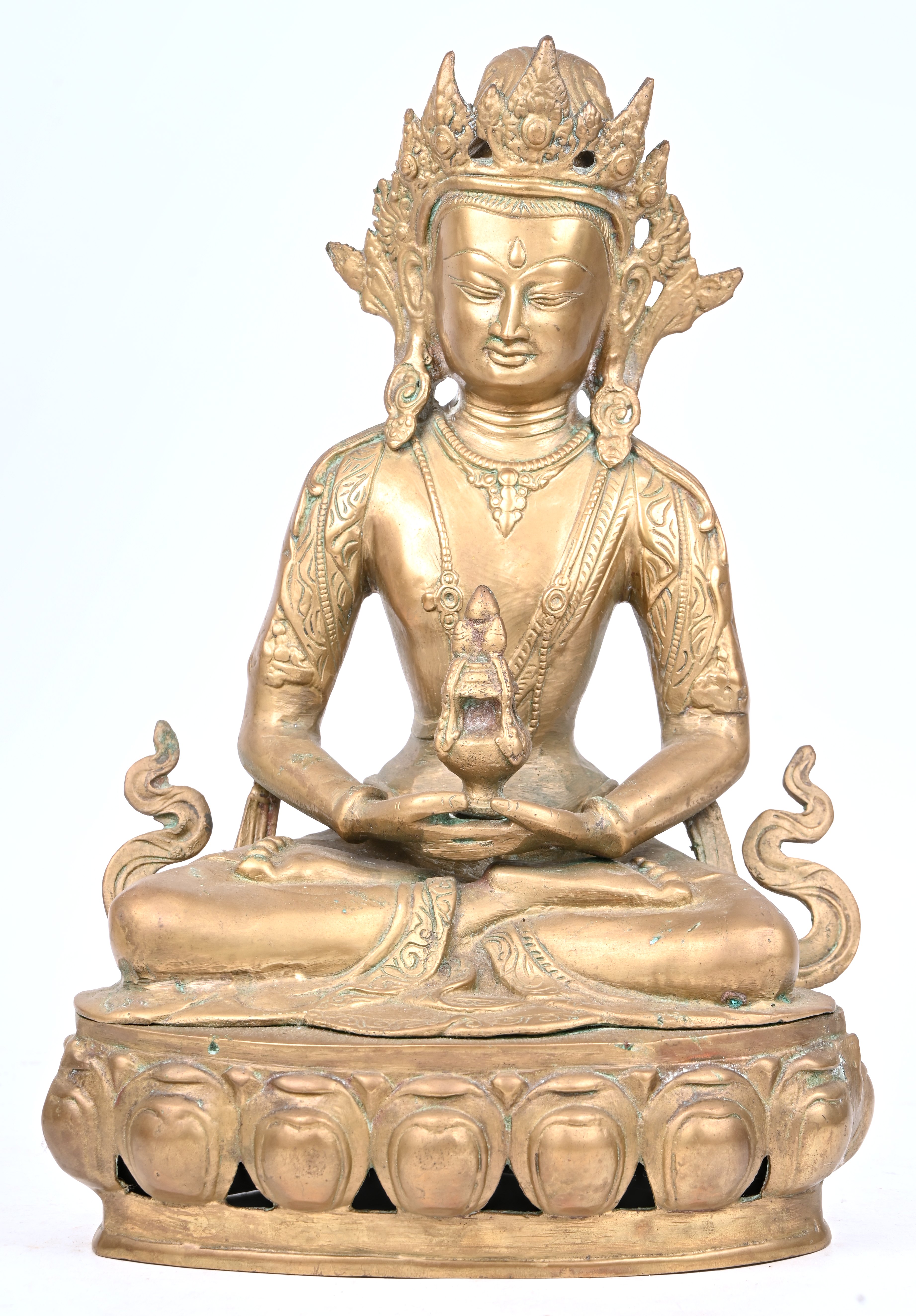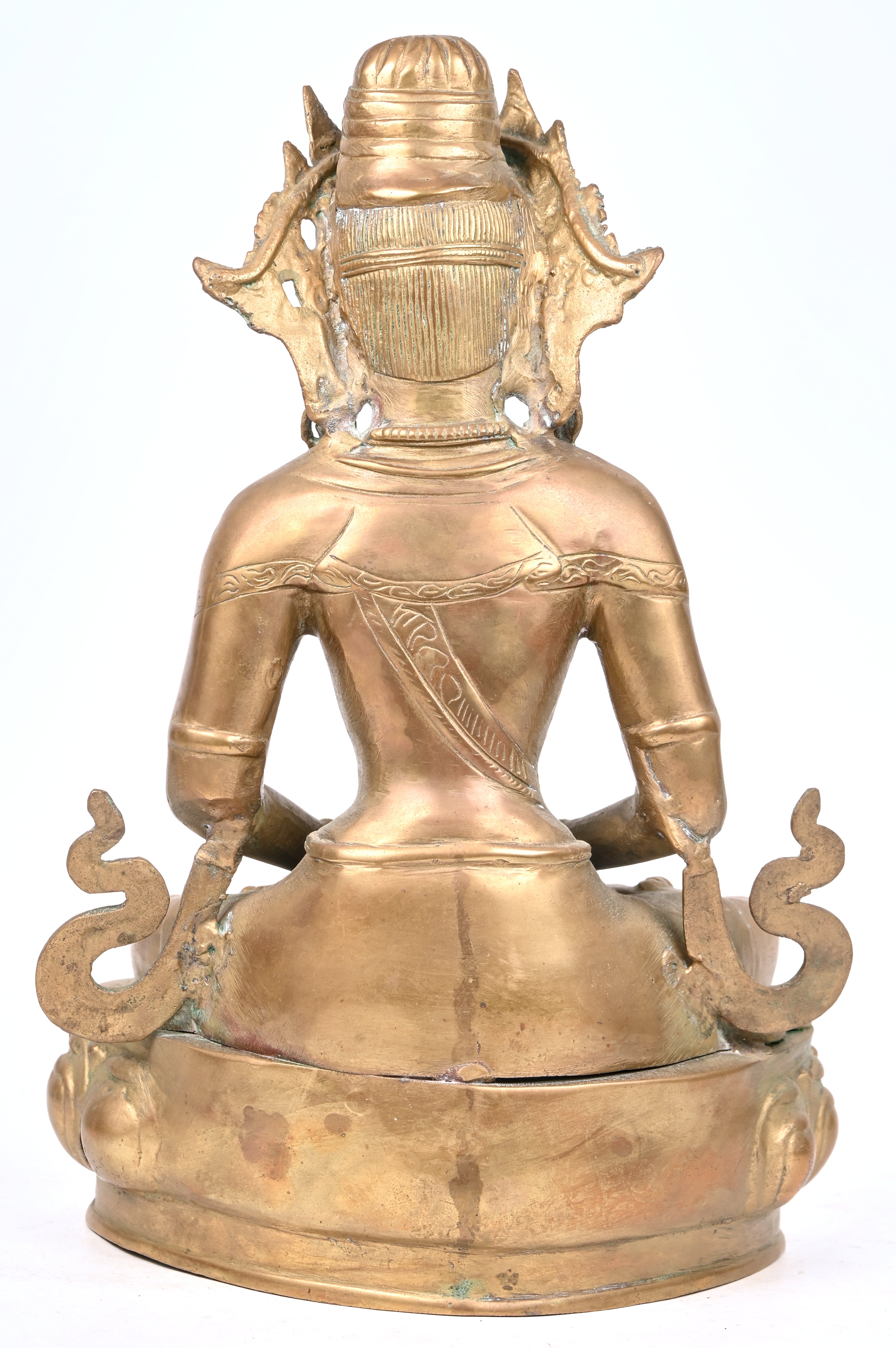 #331‘Shiva’, een gepatineerd bronzen beeld van de godheid in meditatiehouding, met naast zich een Trishul.