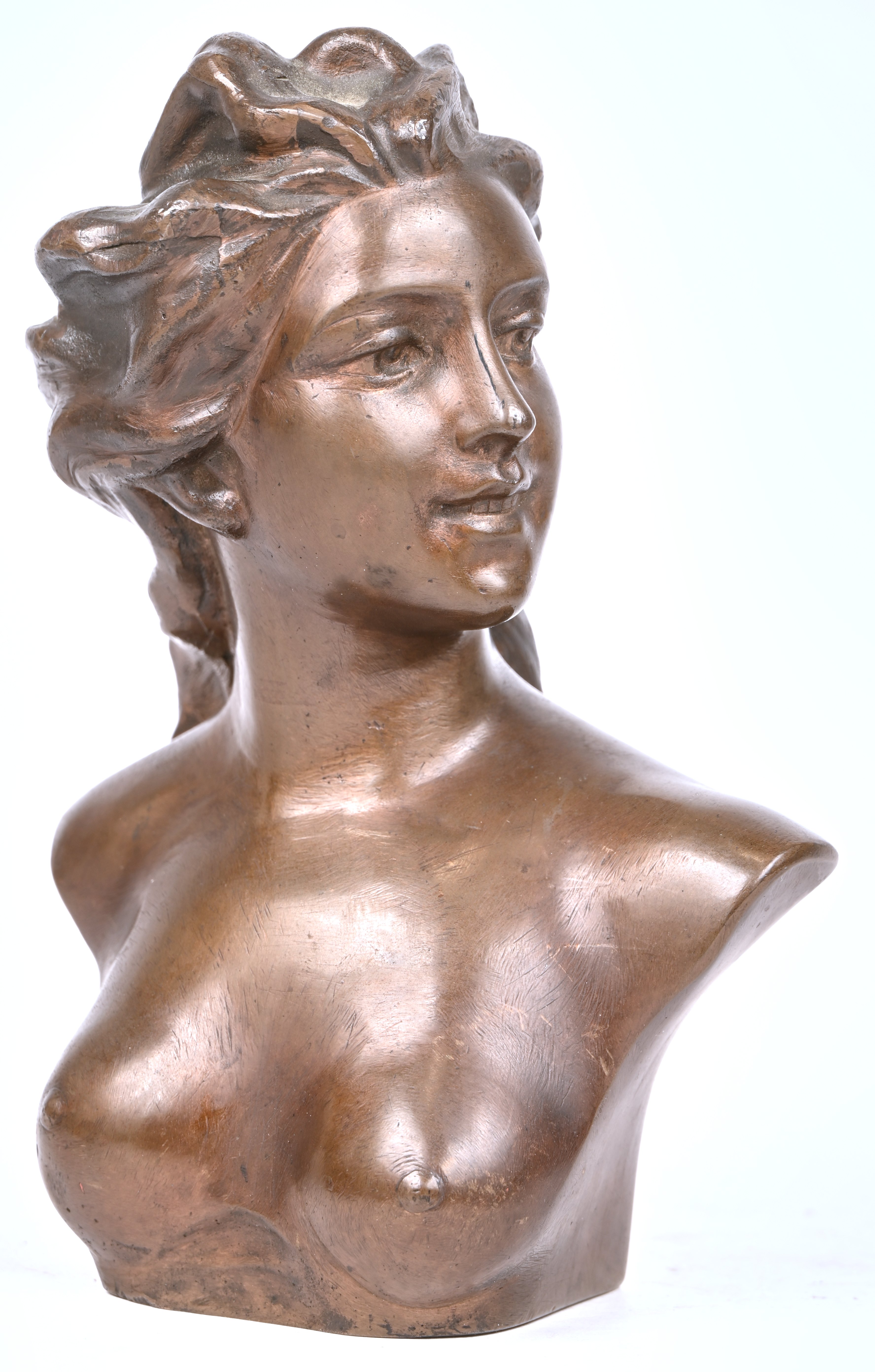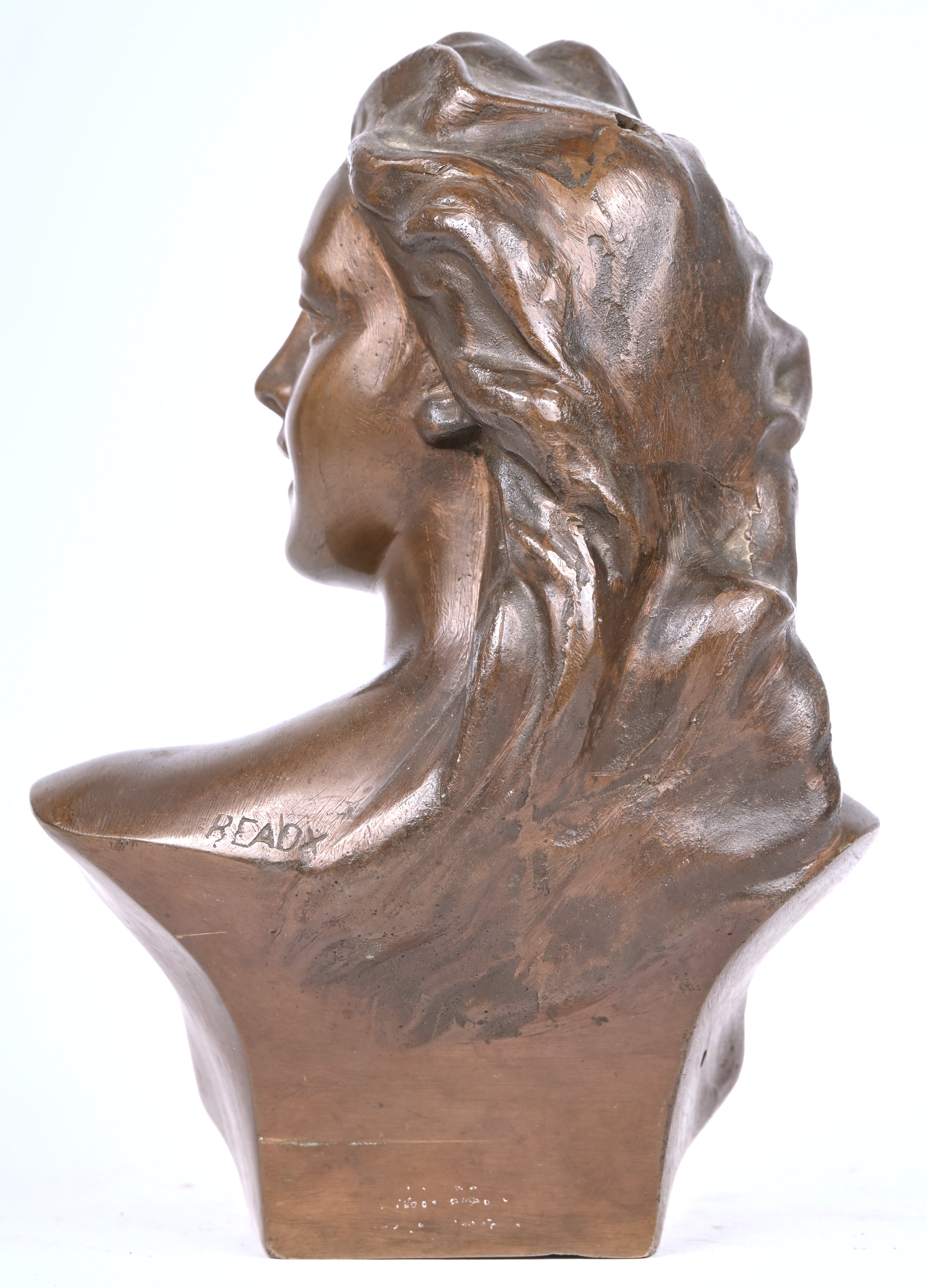#228Een bronzen buste van Christus met doornen kroon. Achteraan gestempeld 267A.