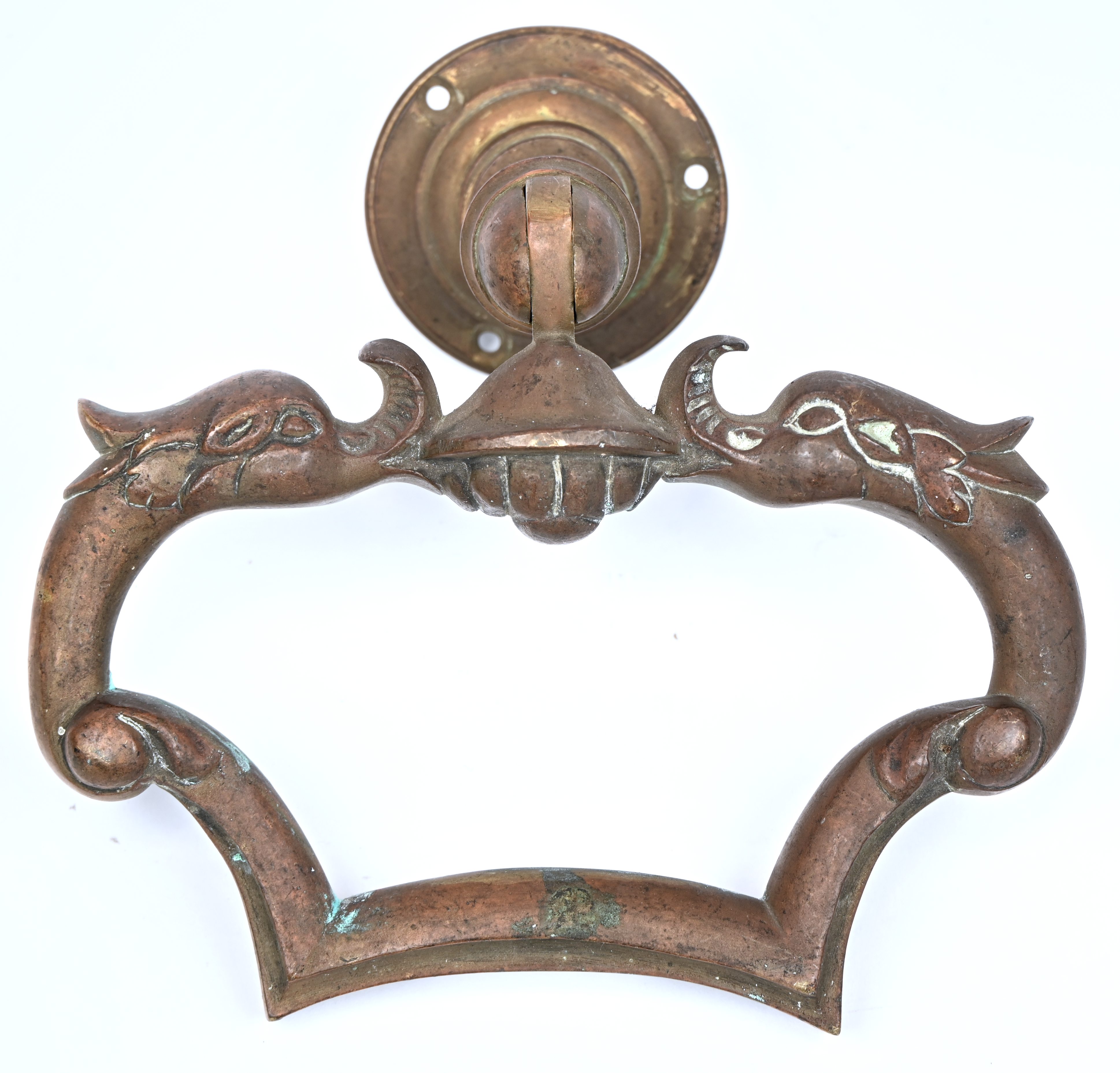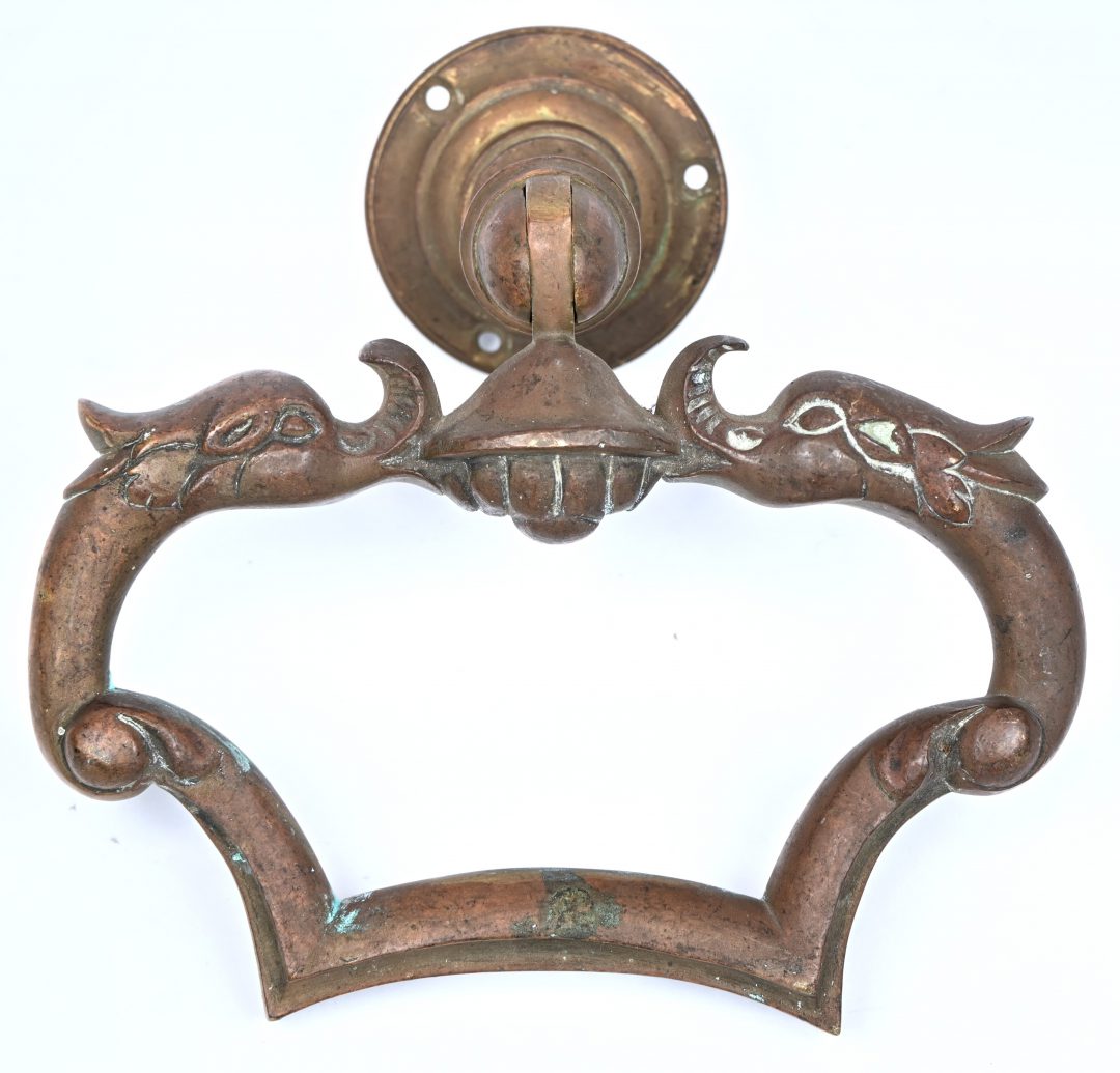A bronze door knocker.