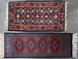 #575Twee kleine Oosterse karpetten van wol. Het éne Kasjmir het andere Mori.