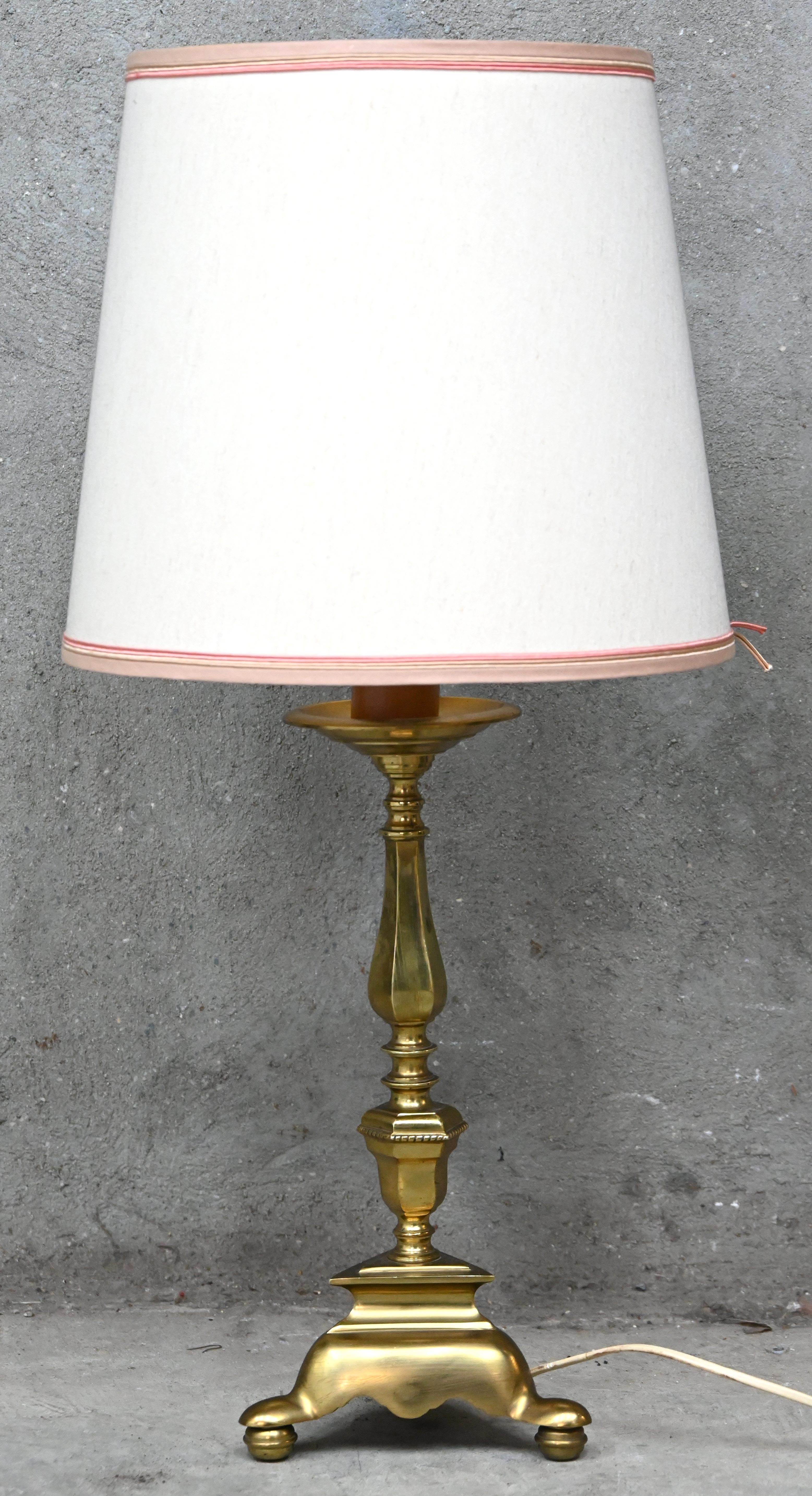 Een bronzen kandelaar gemonteerd als tafellamp.