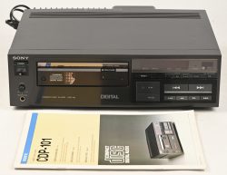 A vintage CD player, Sony CDP-101, in need of refurbishment, laser replacement. Comes with original manual. -