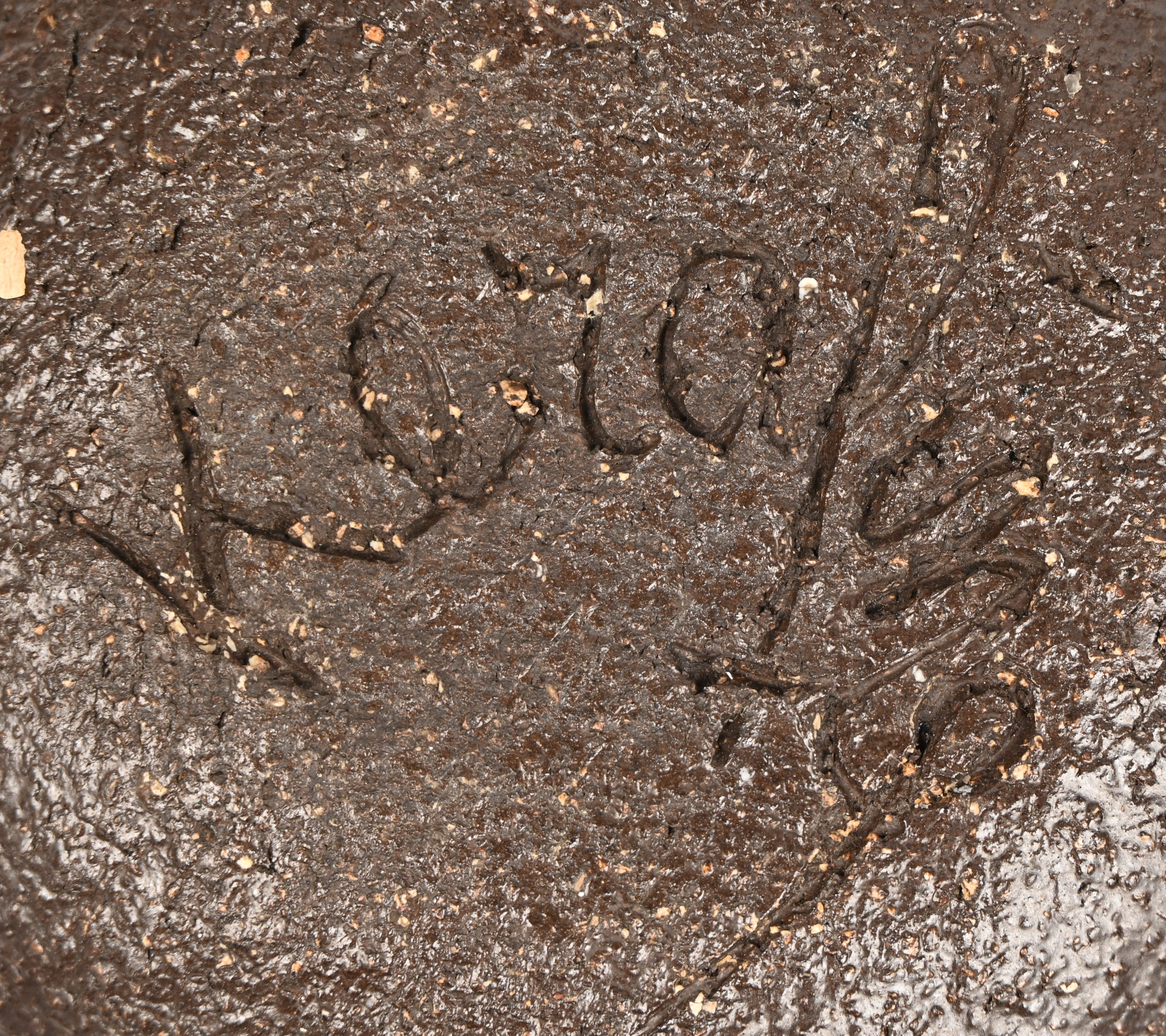 A brutalist vintage ashtray made of patinated earthenware. Signed 'Kerafimo' at the bottom.