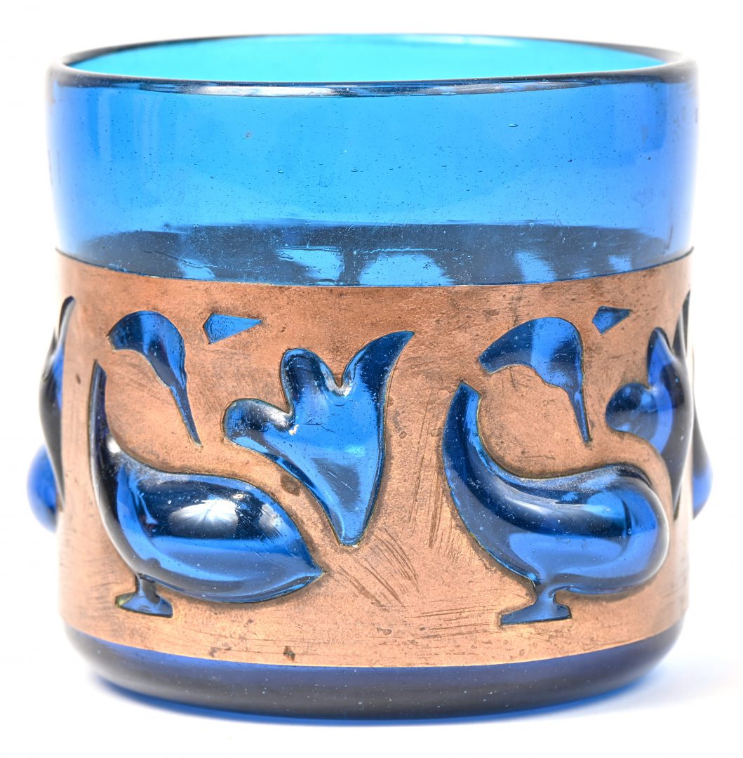 Een brutalistische vaas, blauw glas in koper, niet gemerkt.