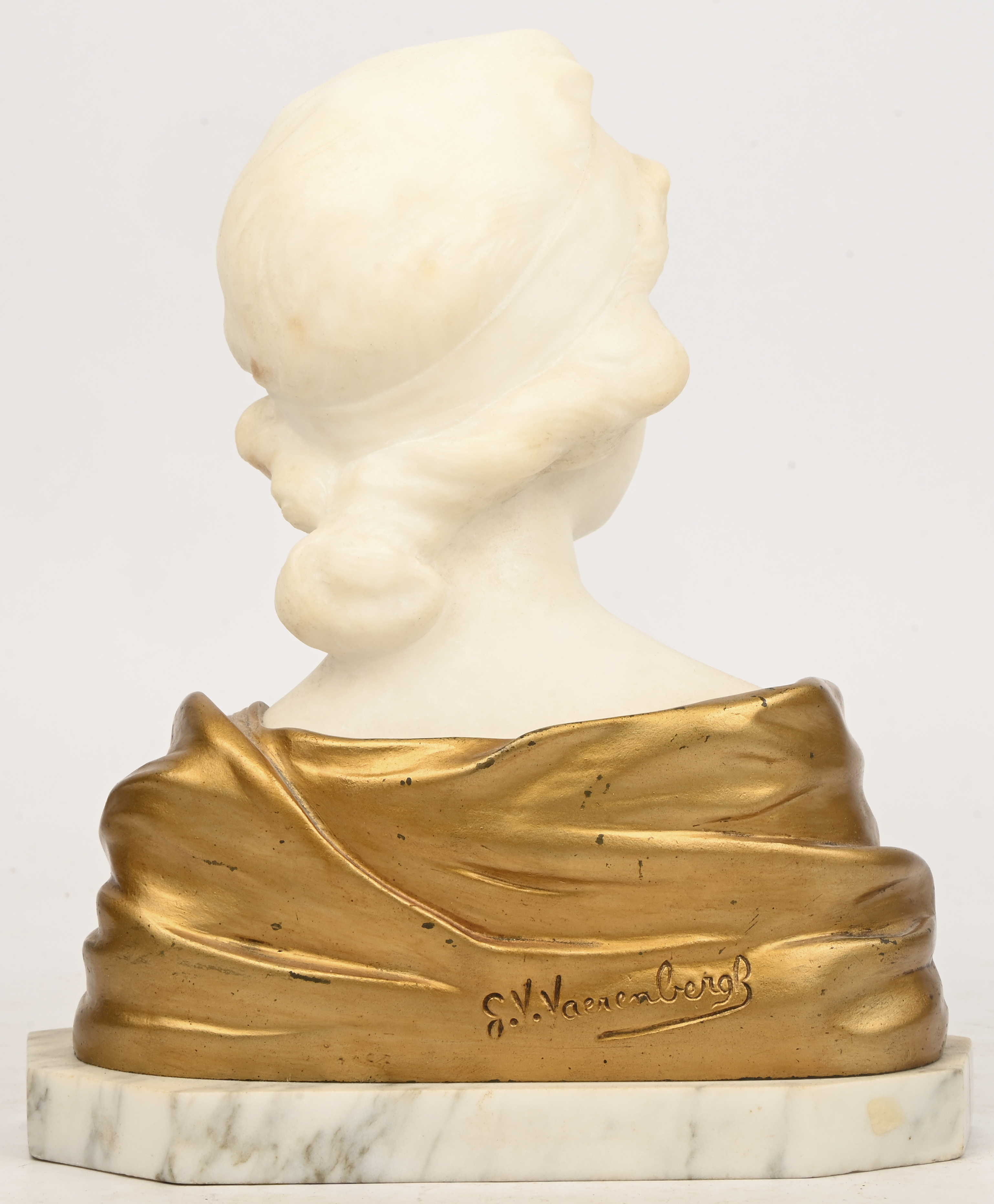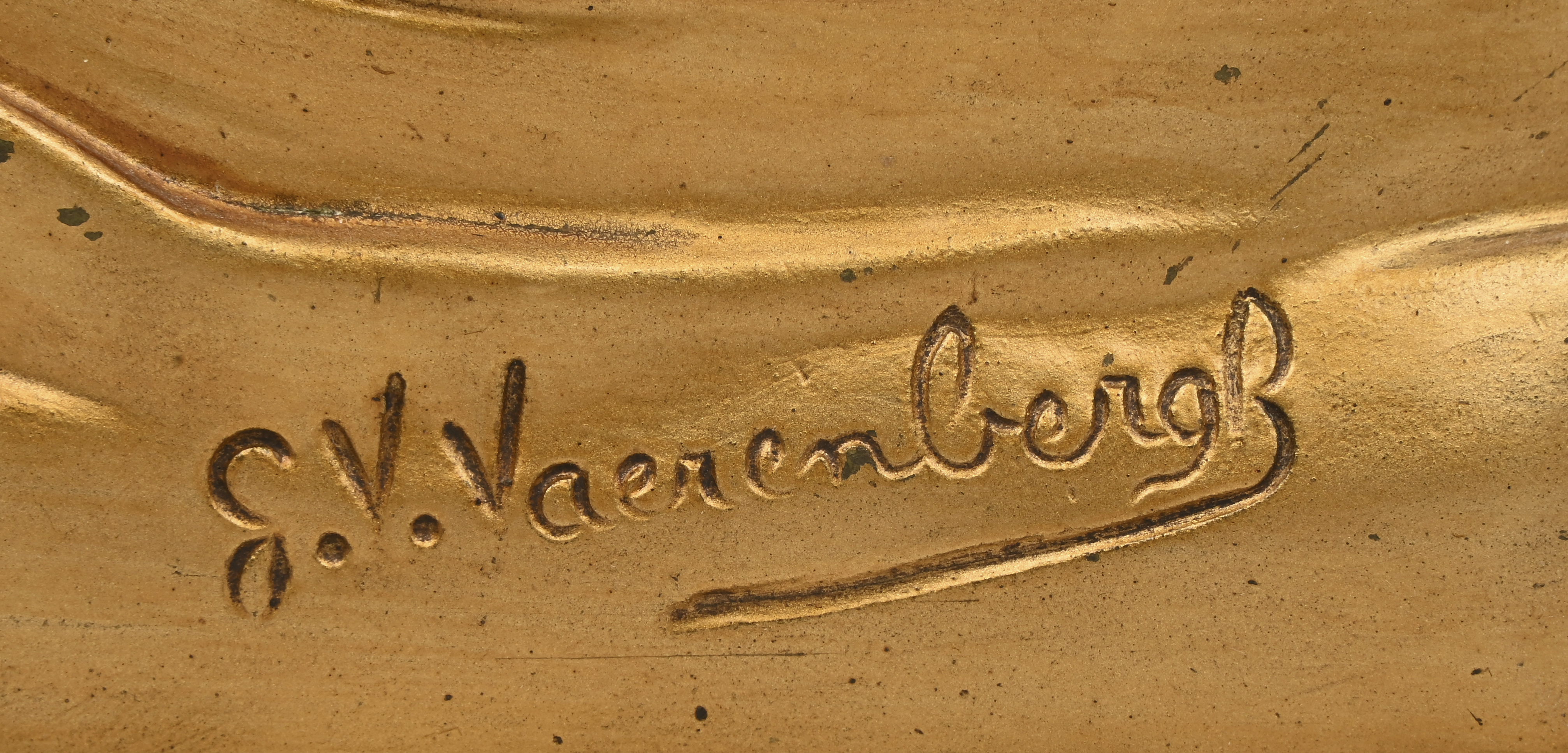 “Moeder met kind”. Een terracotta beeld. Onderaan gesigneerd. Vermoedelijke nummering “8/12”.