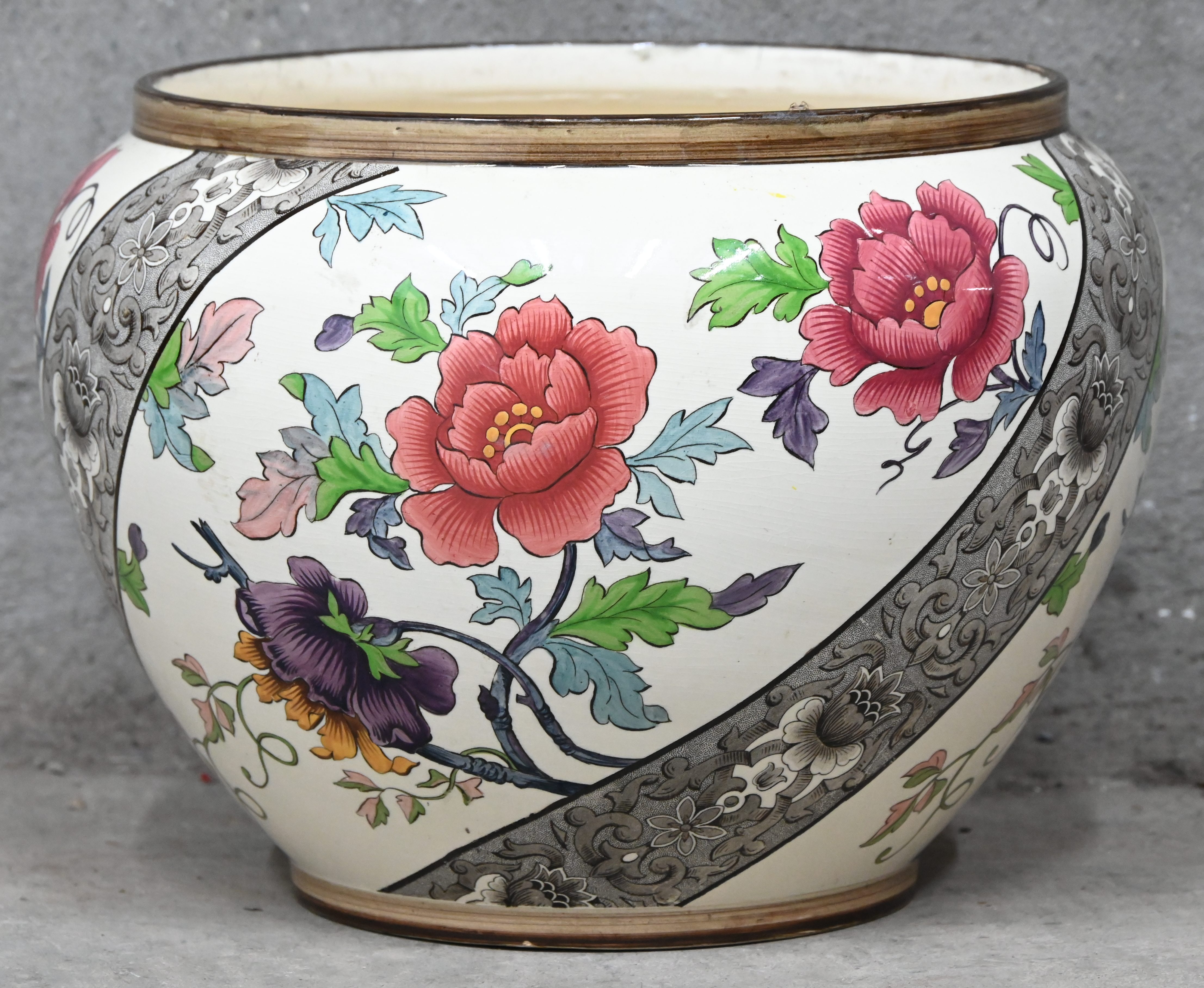 A cache-pot, marked Gien, circa 1900, minor damage to the rim at the bottom.