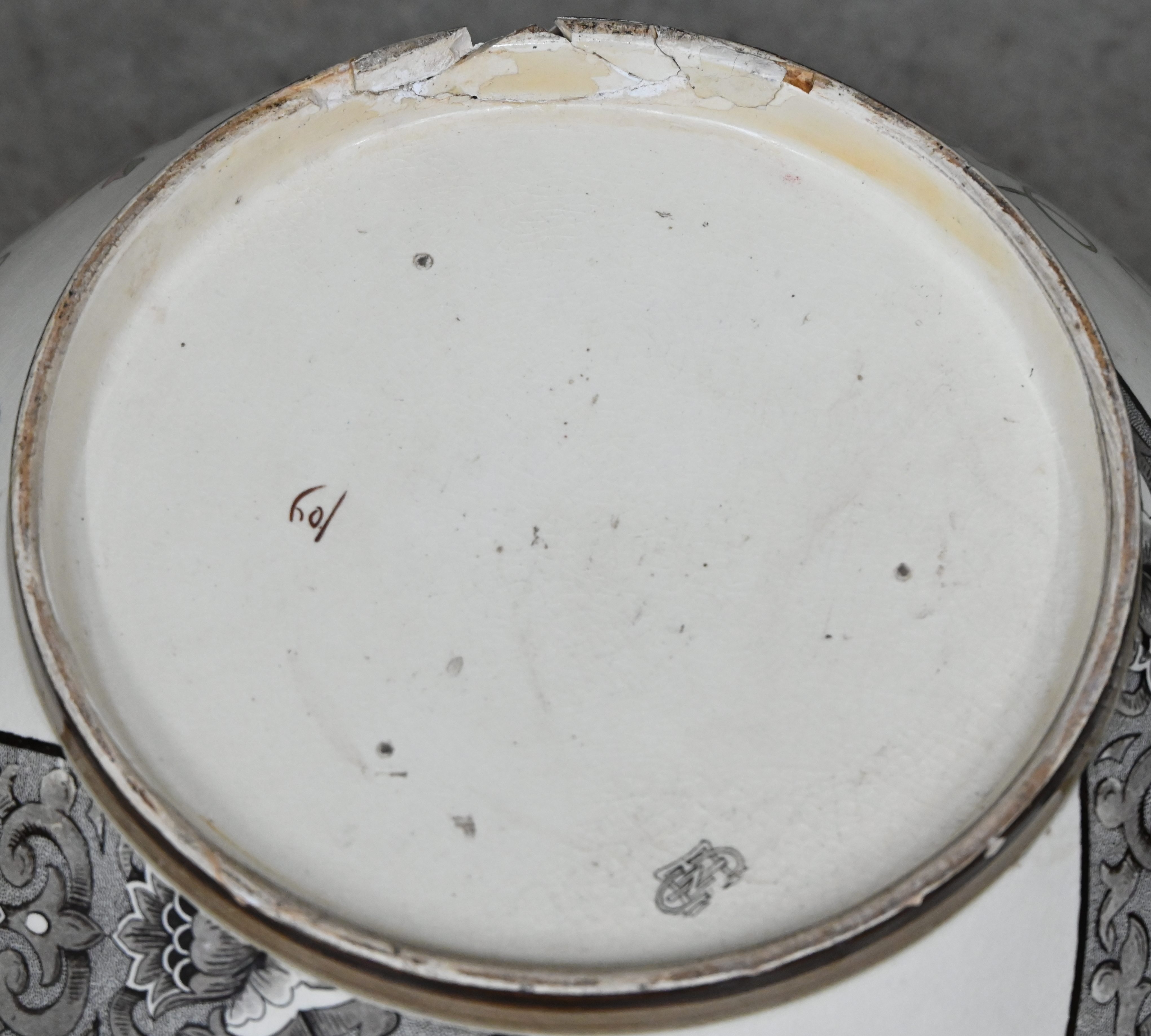 Een cache-pot, gemerkt Gien, circa 1900, randschade onderaan.