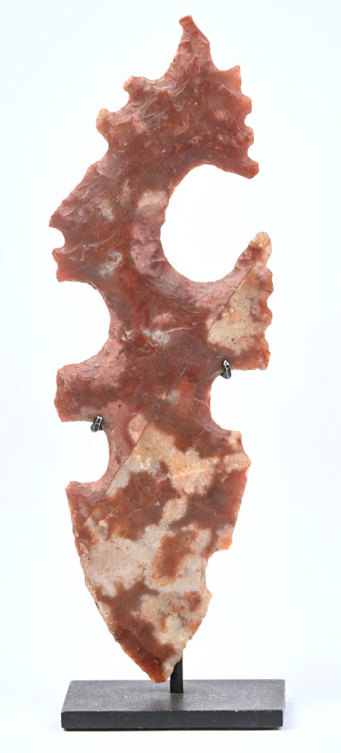 Een ceremonieel mes van silex in precolumbiaanse stijl, in de vorm van een krijger.