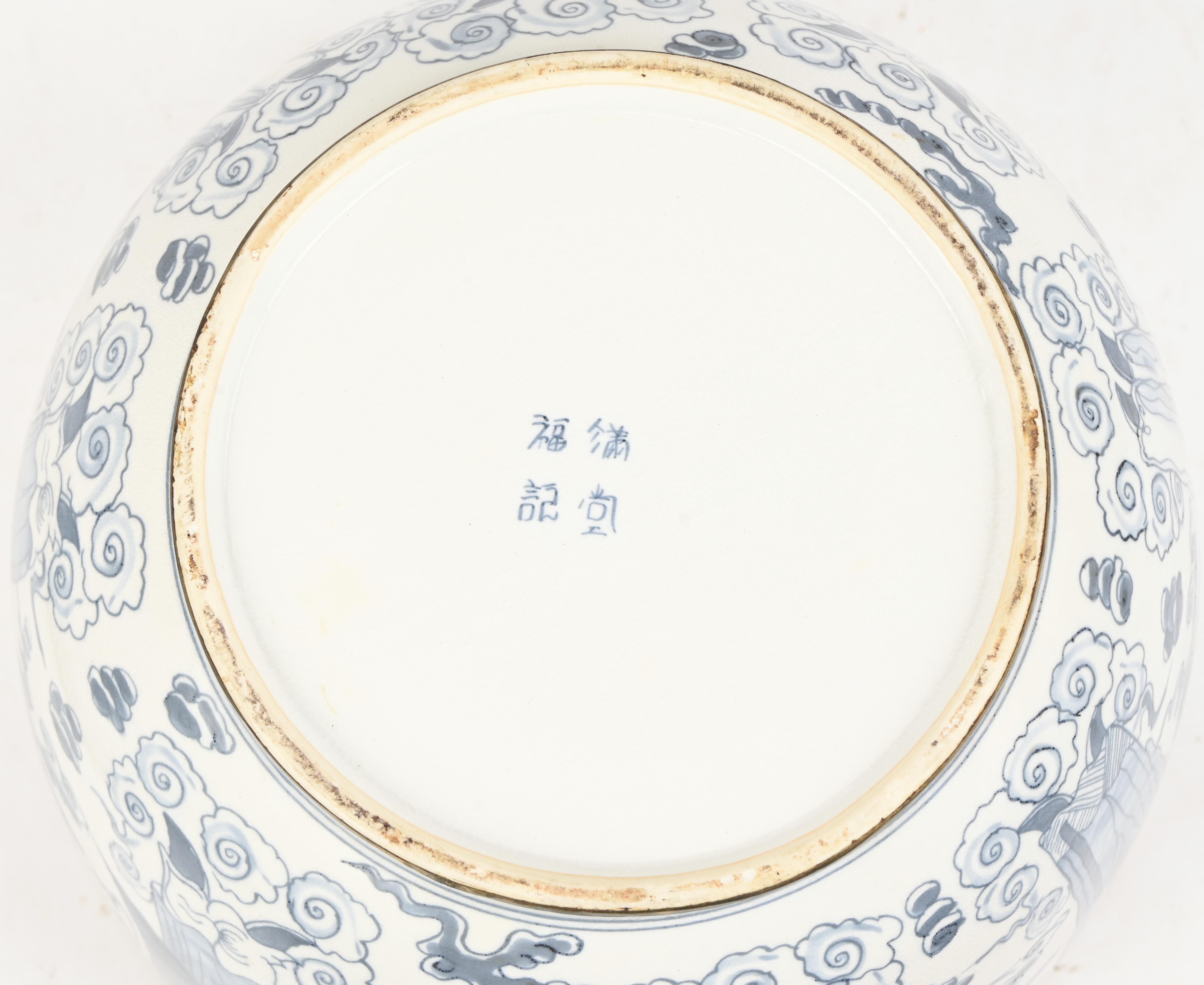 #32Een Chinees aardewerken cachepot met bloemmotief. Haarscheur aan rand.