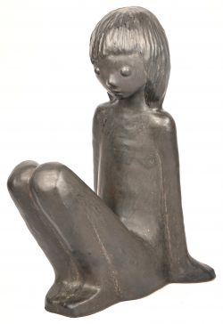 'Sitting Girl', a terracotta Amphora figurine by Elie Van Damme. Marked; N°12, AMPHORA. -