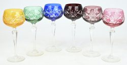 #257Val Saint LambertEen set van 6 gekeurde kristallen wijnglazen, niet gemerkt.