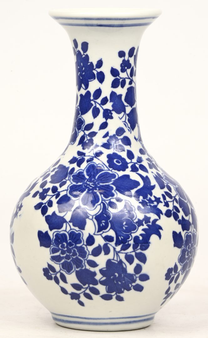 #82Een porseleinen dekselvaas naar Japans voorbeeld, model Yokohama door Kaiser. Toegevoegd 2 miniatuur vaasjes in cloisonné