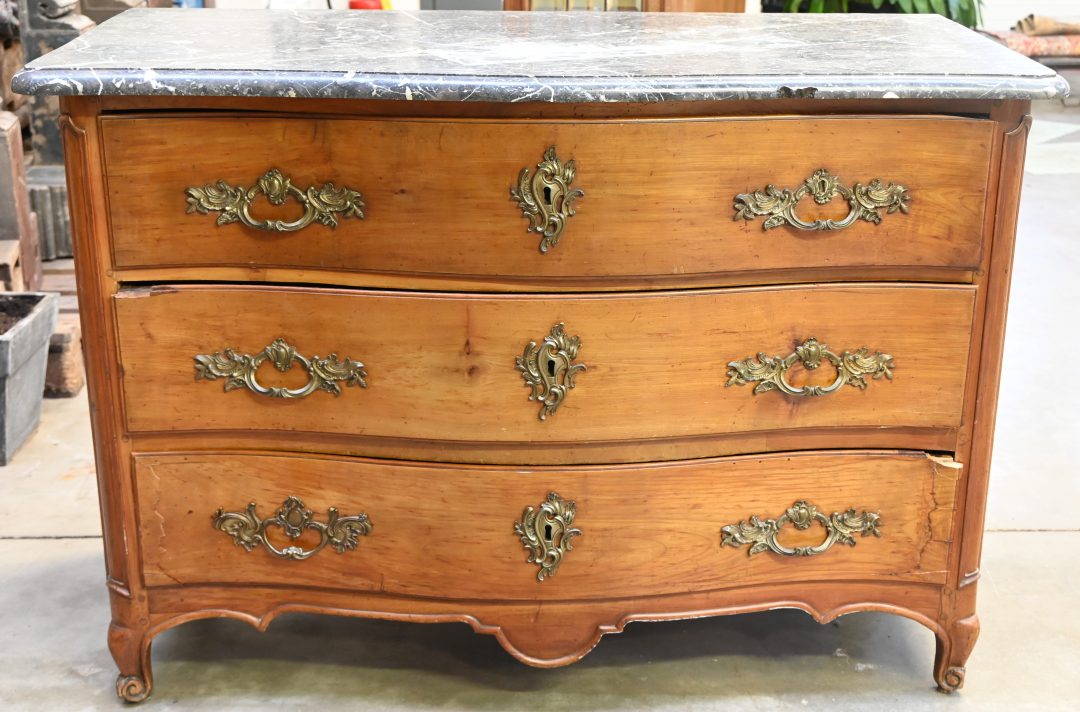 #36Een massief eikenhouten ronde tafel in Louis XV stijl, verlengbaar maar zonder verlengstuk.