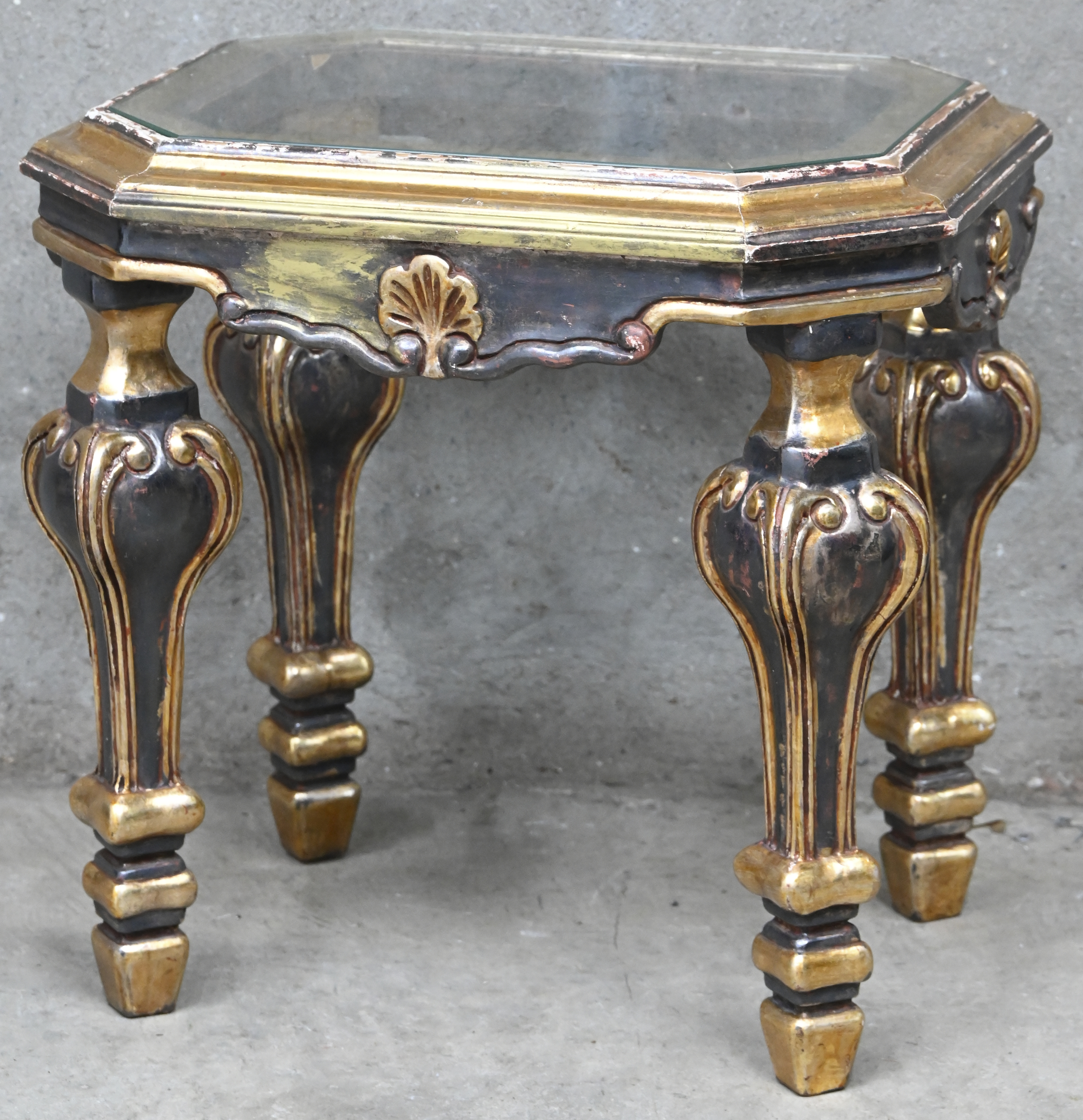 A modernist square coffee table, the top with an abstract painting in églomisé, signed. -
