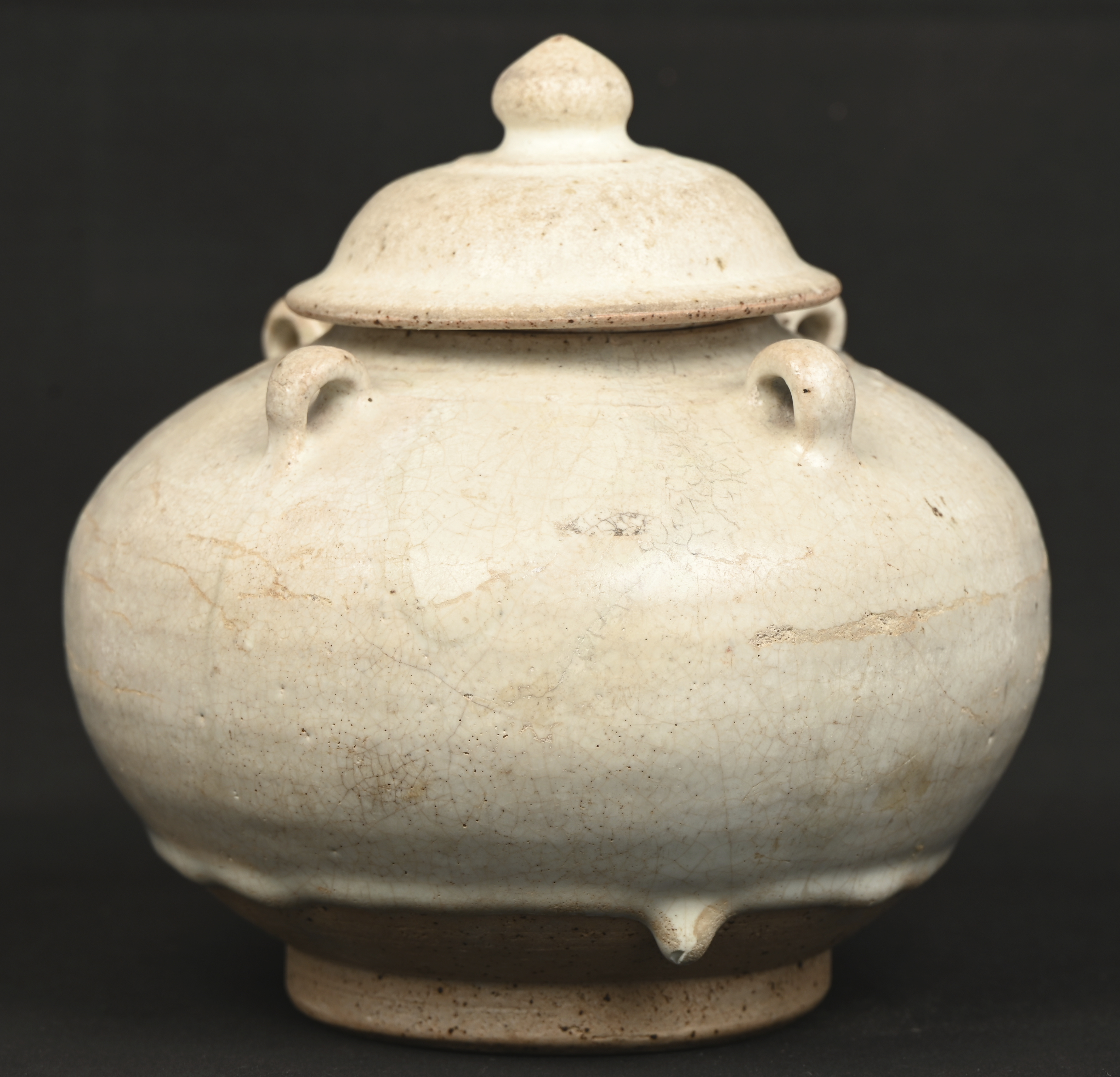 #411Een grote voorraadpot van blauw-wit geglazuurd Chinees aardewerk, met Wanli decor.