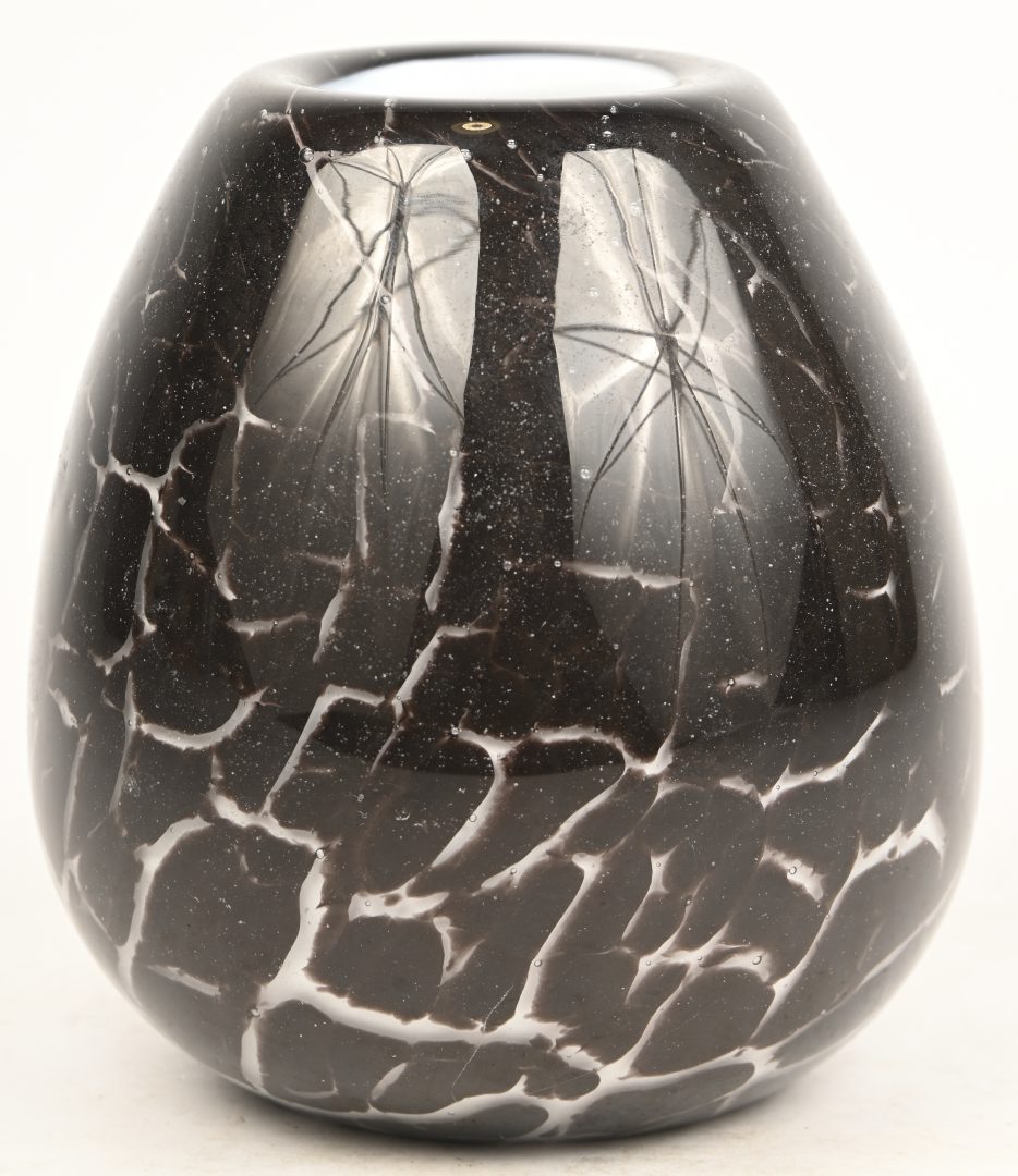 #190Een ranke en zeer hoge glazen vaas, stijl art deco.