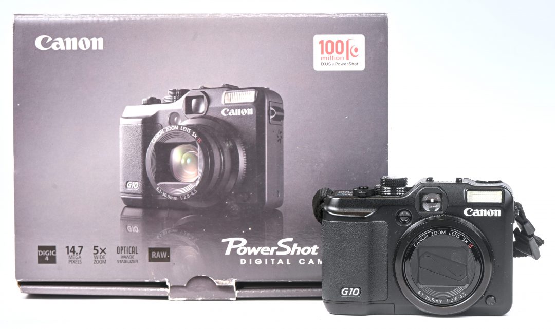 A digital camera, Canon PowerShot G10, working, with original box, instruction manuals and charger.