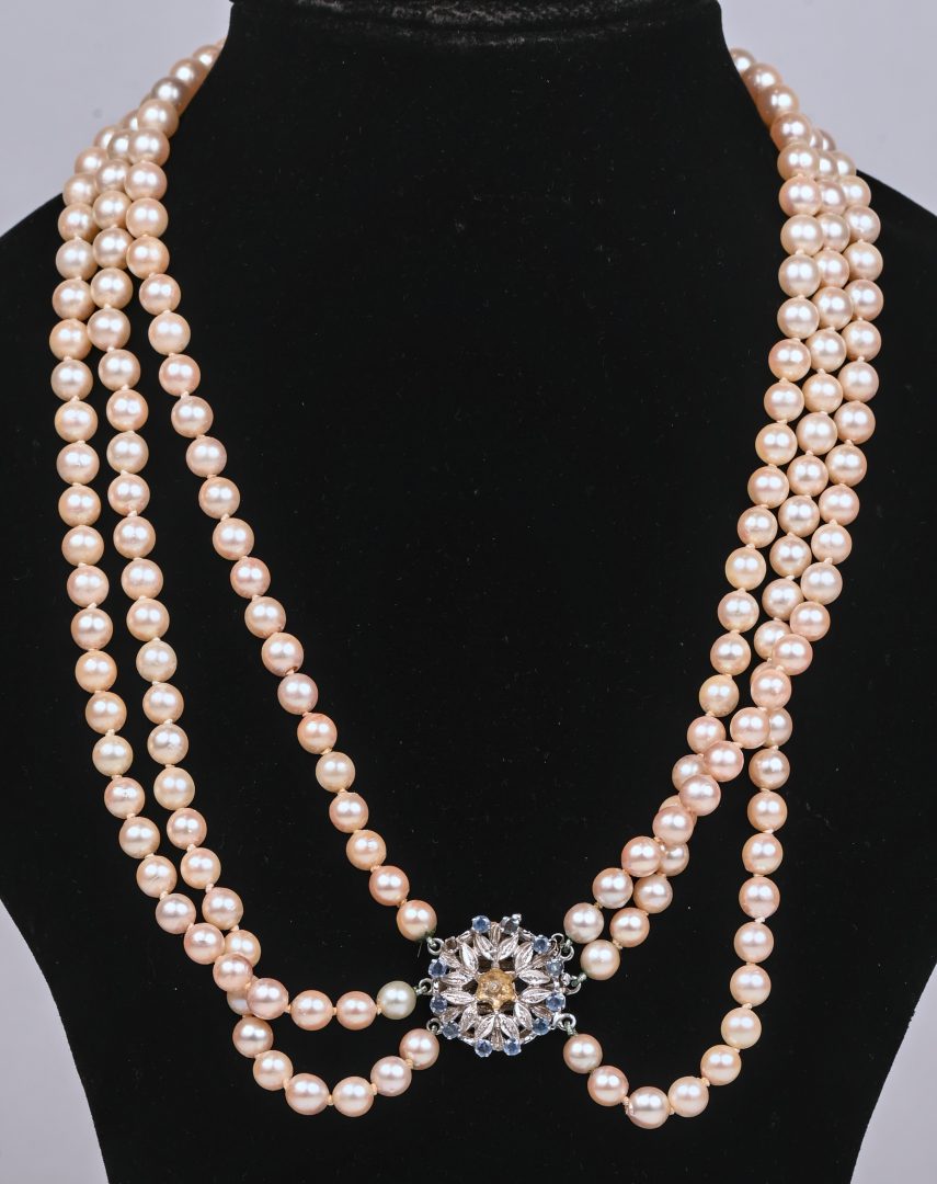 #230Een rose koortketting met hanger van zilver 925 ‰ en 18 kt geelgoud bezet met een rookkwarts cabochon. Gemerkt.