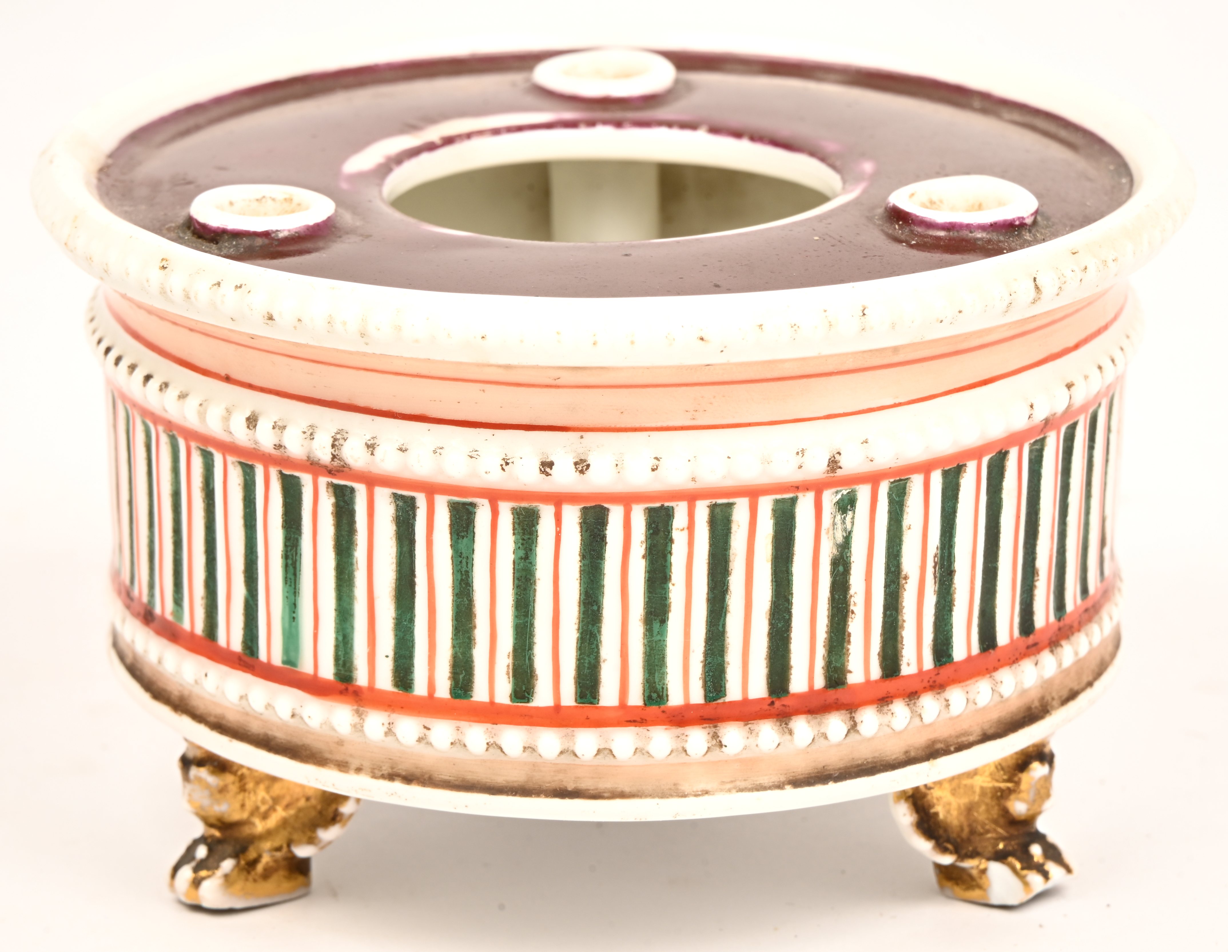 #108Een beschilderde porseleinen bloempothouder. Editions d’art a tirage reserve sur porcelaine de Couleuvre.