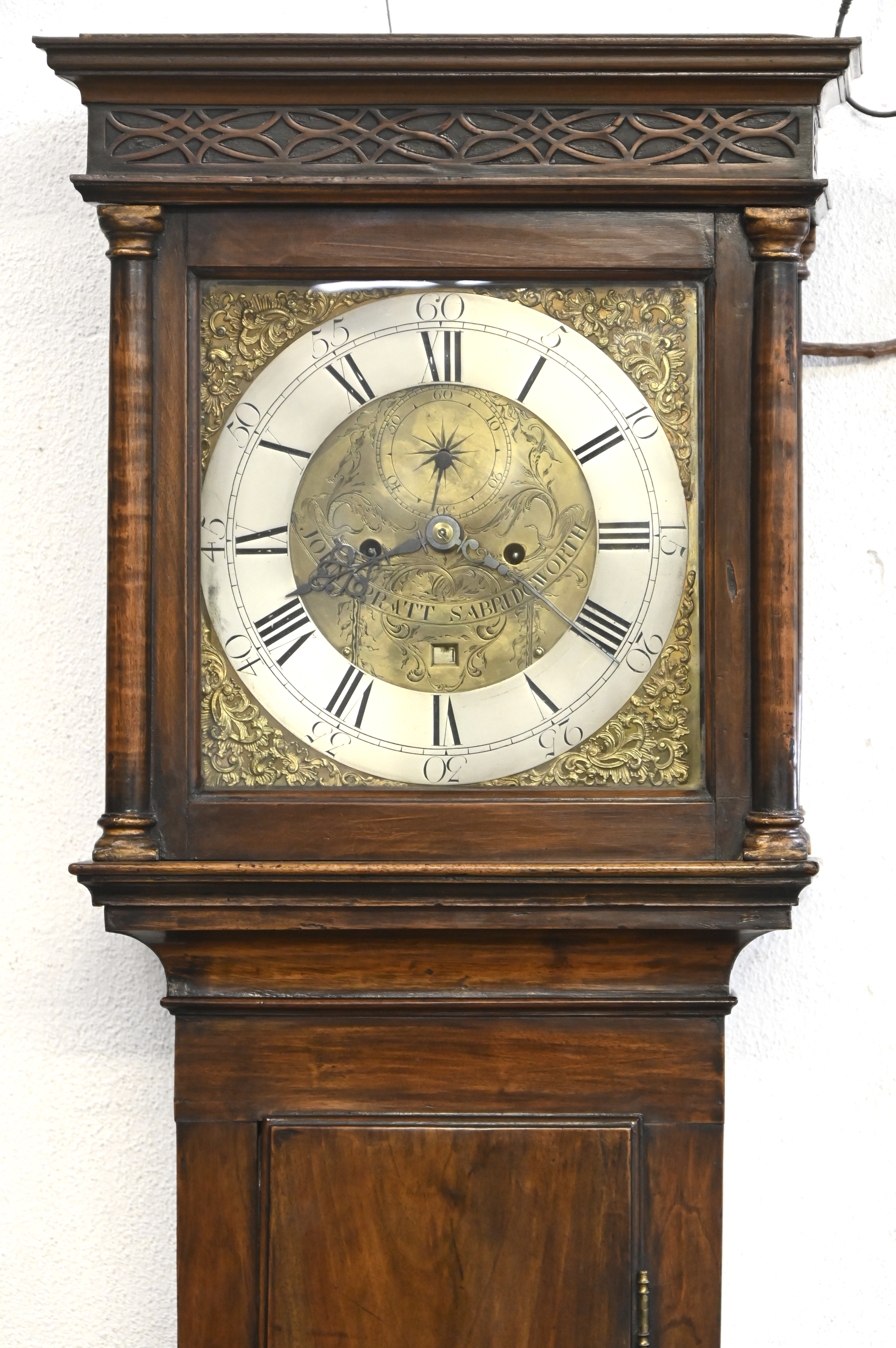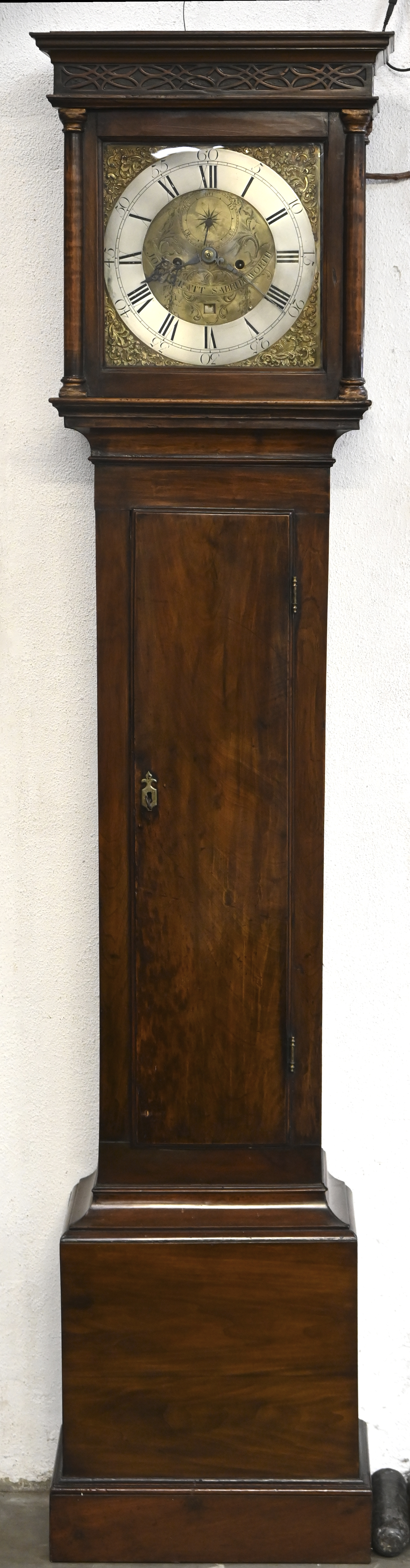 Een Engelse staande klok met mahoniehouten kast. Begin XIXde eeuw.