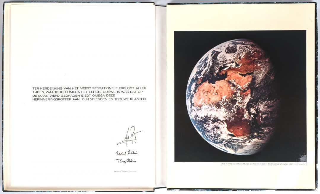 A photo box: In commemoration of the most sensational achievement of all time, when Omega became the first watch worn on the moon, Omega offers this commemorative case to its friends and loyal customers.