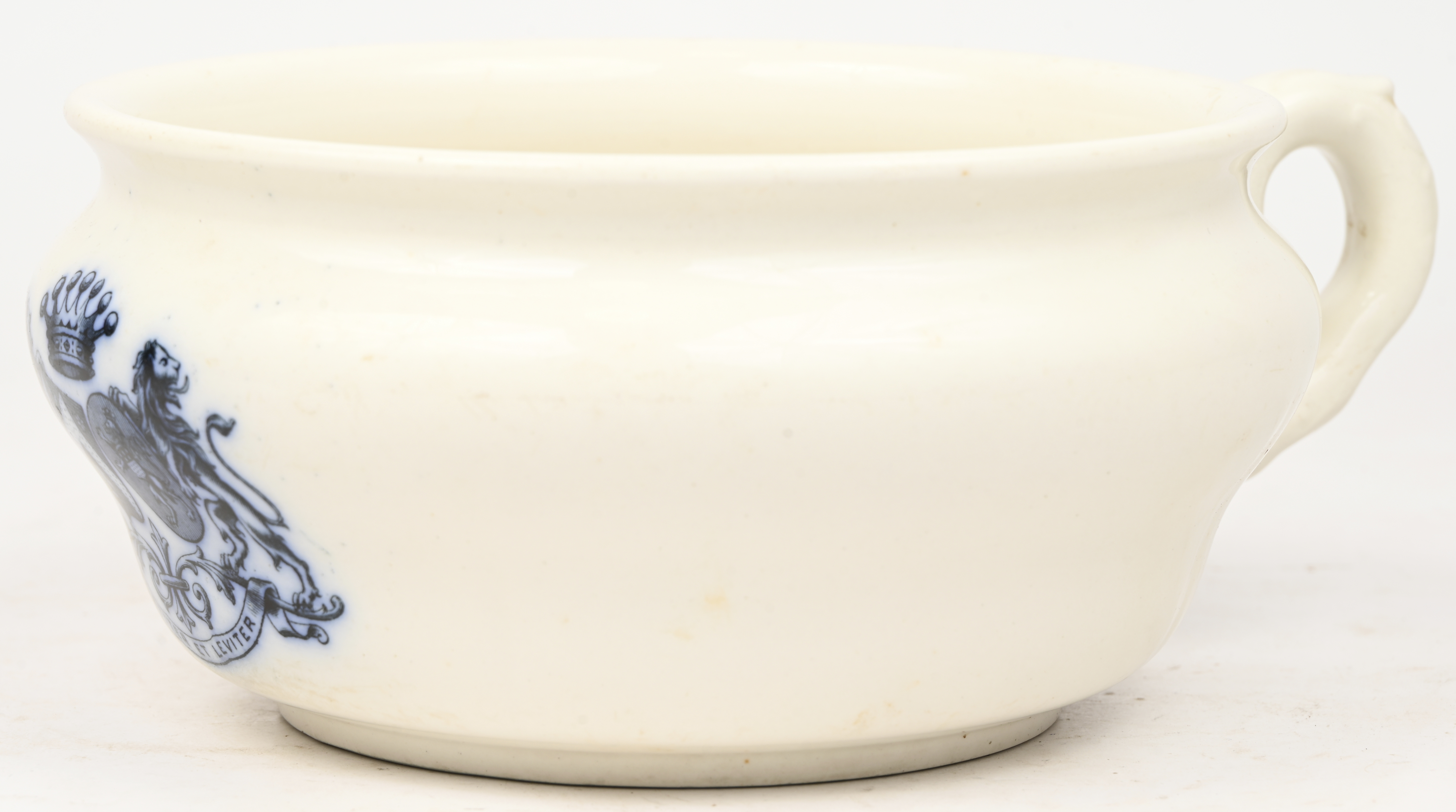 #88Een lot Rouen aardewerk bestaande uit een schaaltje, een asbak, een kandelaar (gelijmd), een vaasje en een eierdopje.