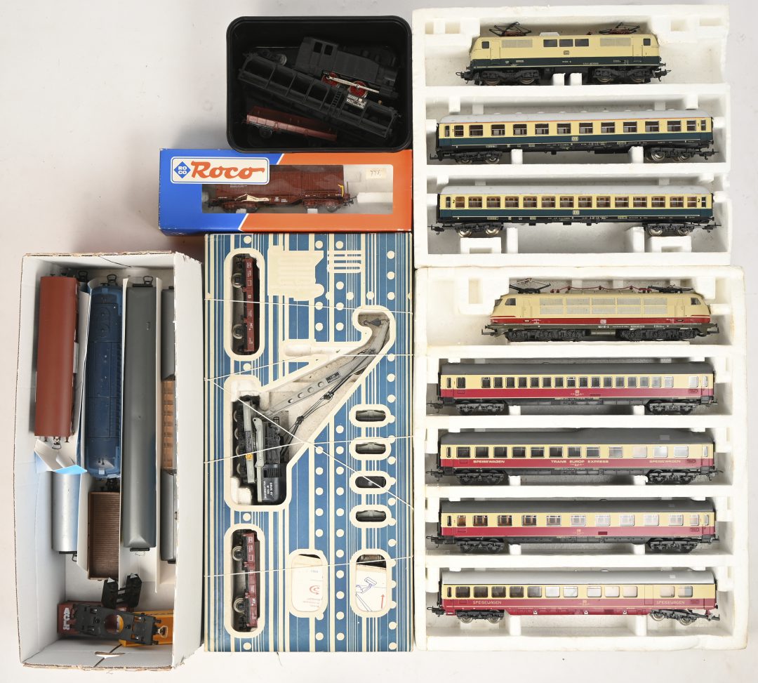 #144Alexandre MarkelbachPeriod: 1824-1906Zestien Märklin wagons voor personenvervoer en goederen. 313/3, 315/1, 4003, 4004, 4022, 4026, 4027, 4415, 4508, 4611, 4616, 4617, 4618, 4910 in OVP en twee platte wagons zonder OVP.