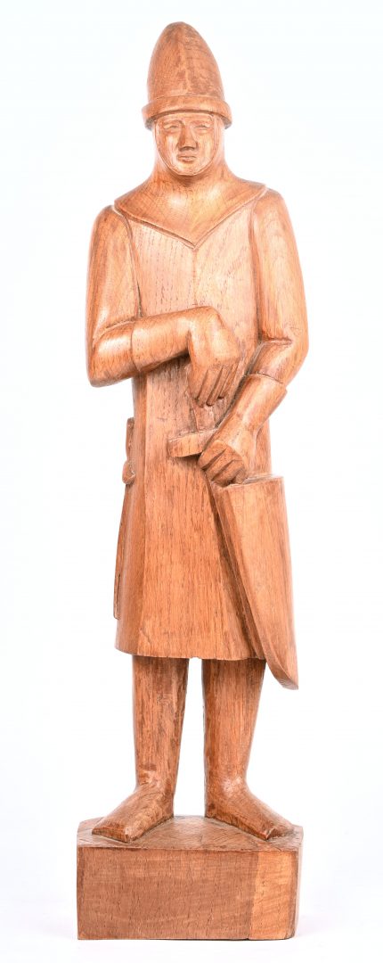 “Aartsengel Michaël verslaat de draak”, een verguld metalen beeld op marmeren sokkel, naar Emmanuel Frémiet. Het zwaard met punt manco. Draagt handtekening.